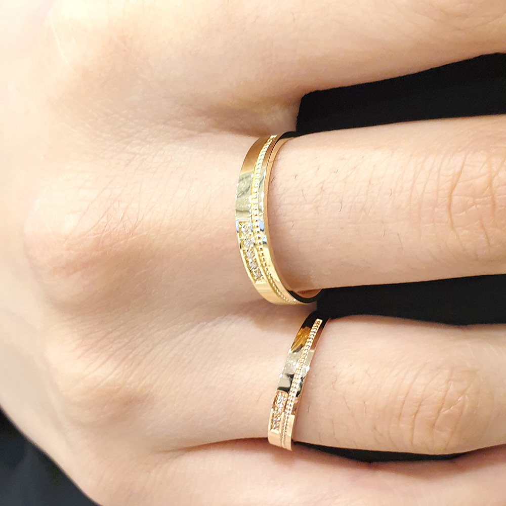 남자반지는 옐로우골드 여자반지는 로즈골드 색상으로
