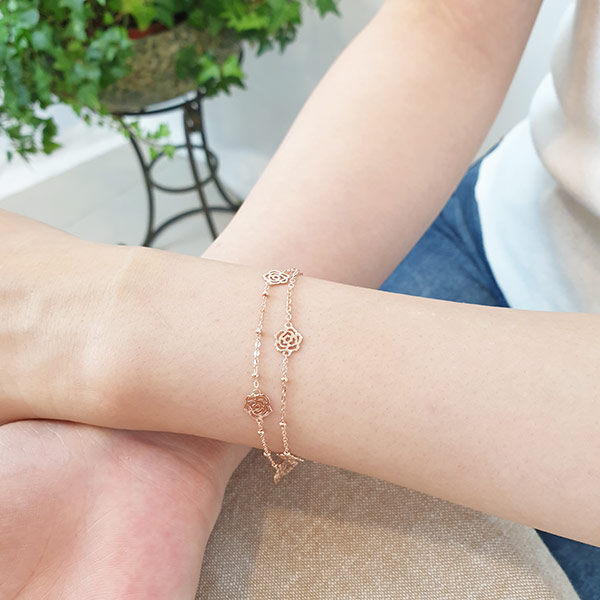 14k 로즈 장미 두줄 체인 팔찌 입니다.