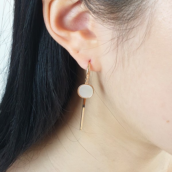 18k 흰자개 서클 스틱 롱 귀걸이 입니다.