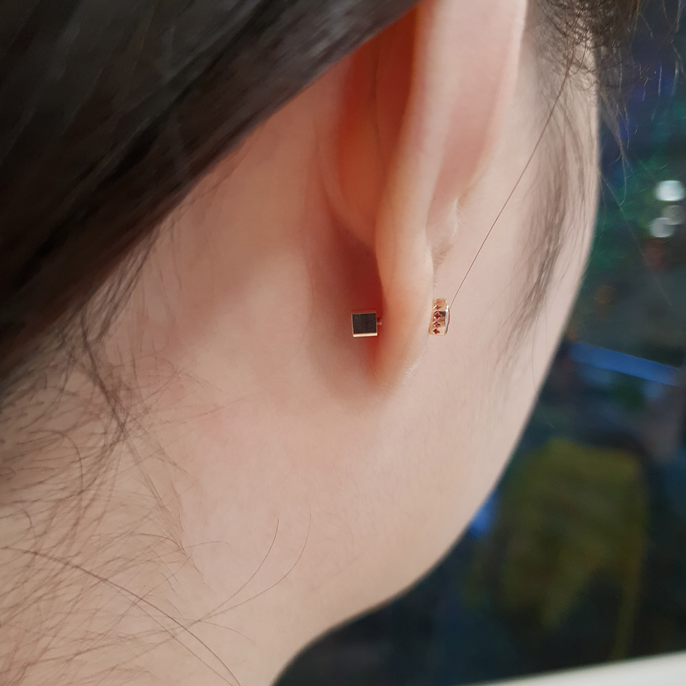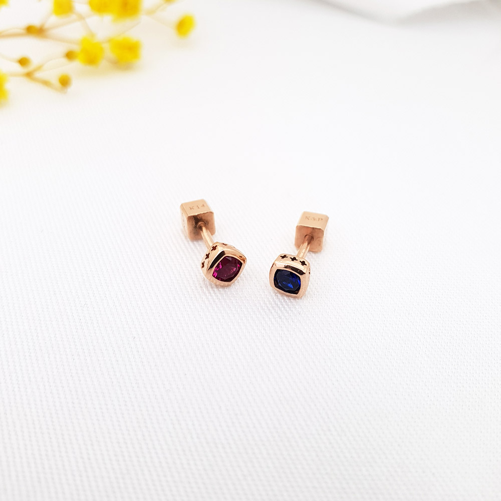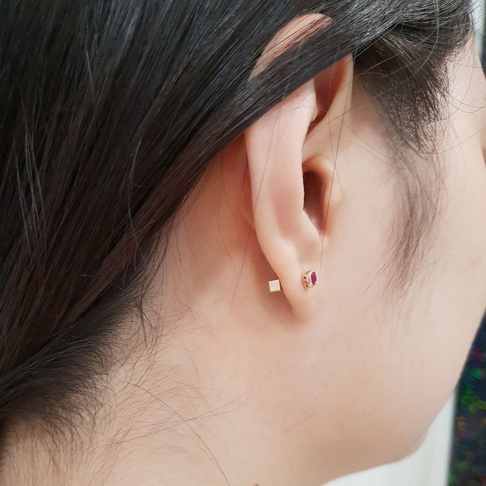 14k18k 스퀘어 사파이어 루비 피어싱 입니다.