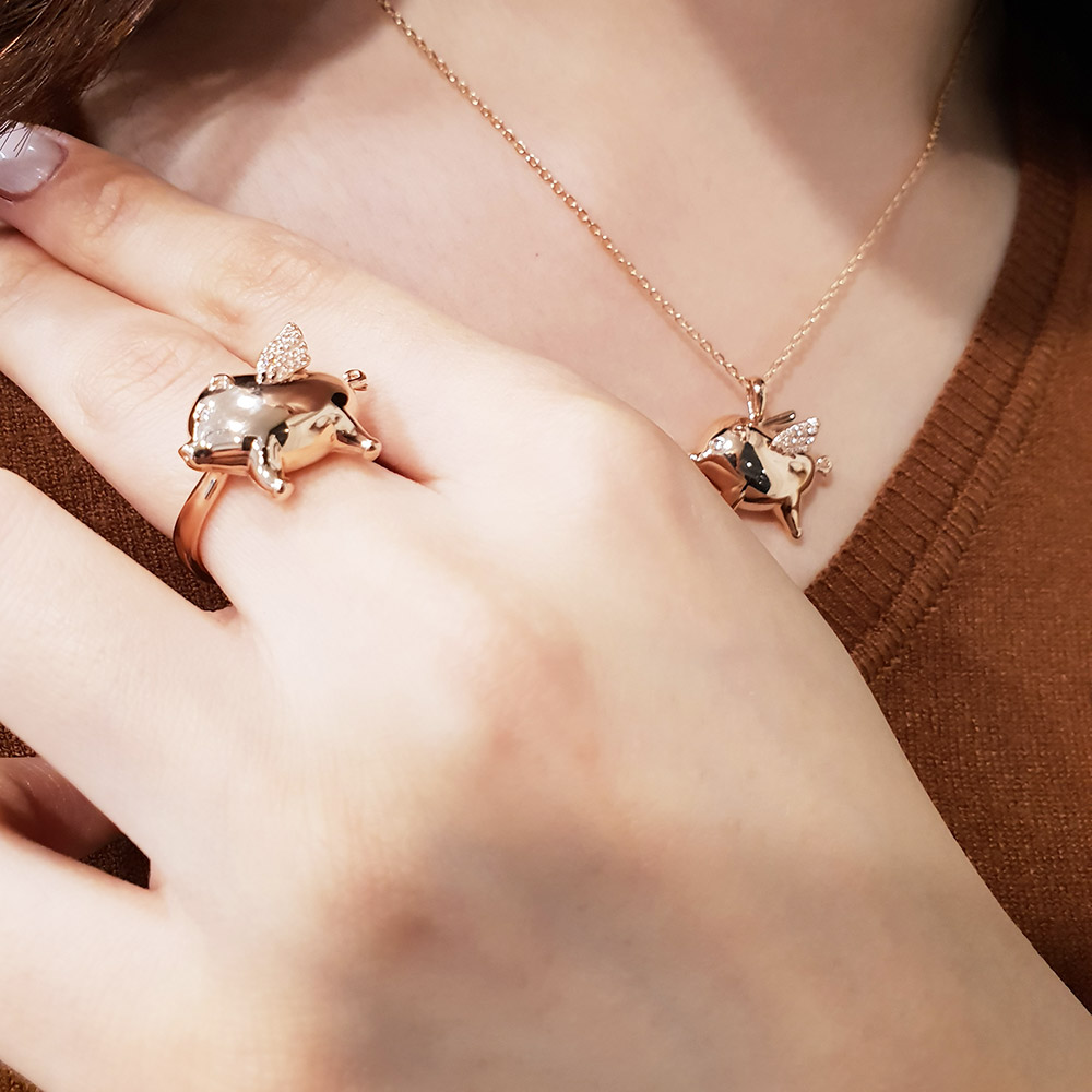 14k 18k 날개달린 천사 돼지 반지 입니다.