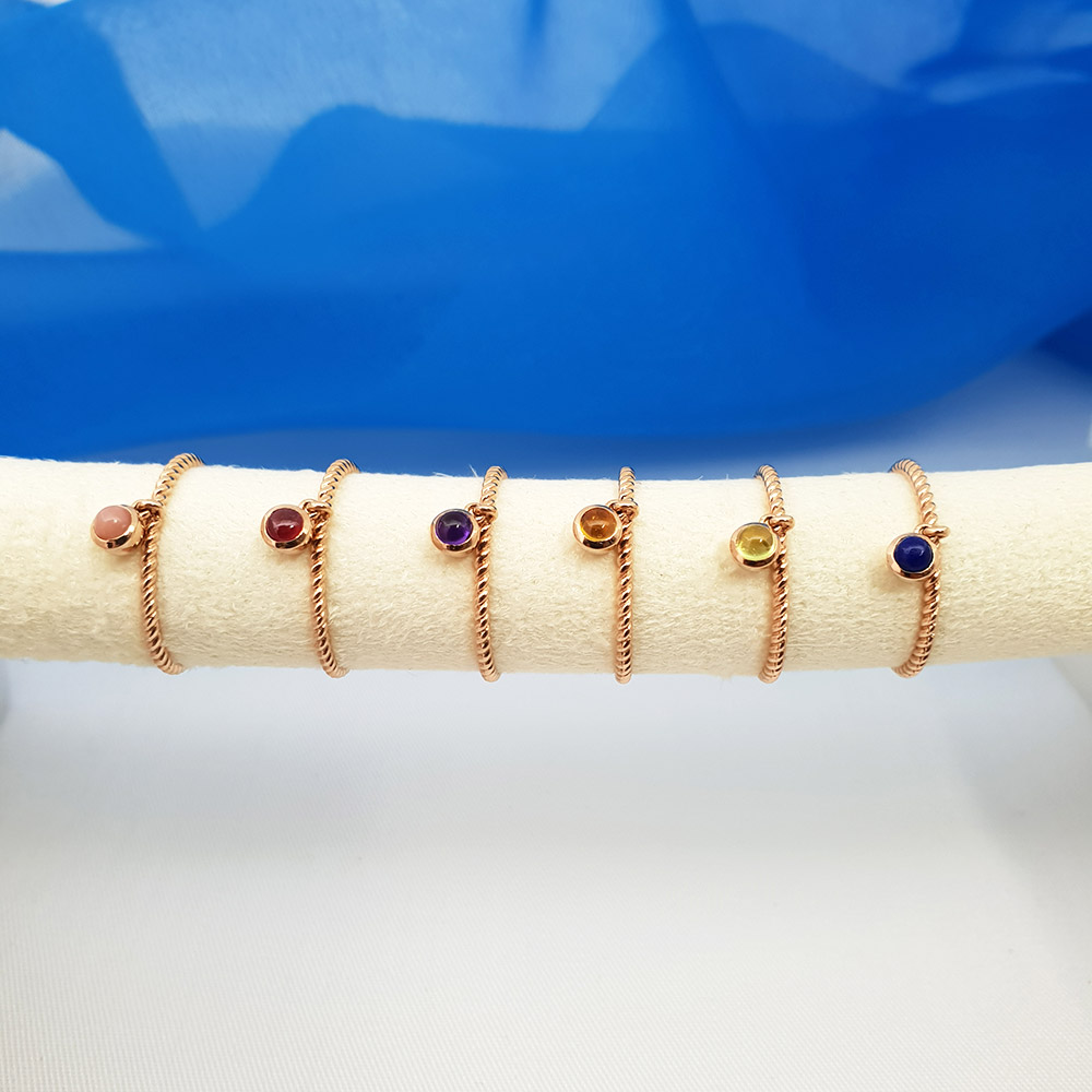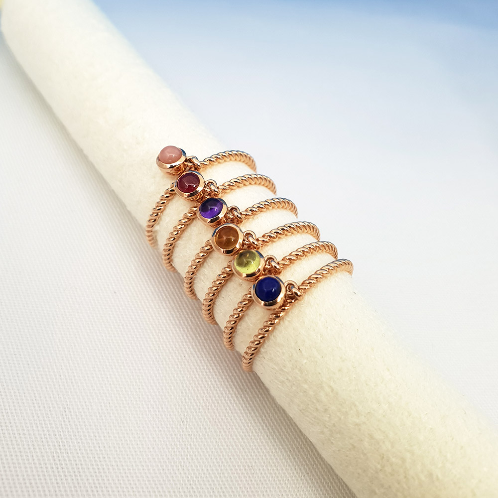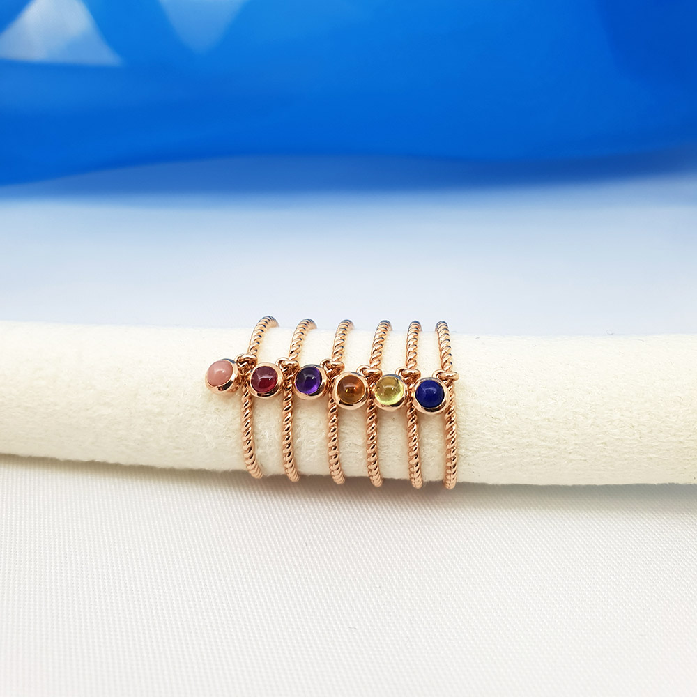 왼쪽부터 - 핑크오팔,루비,자수정,시트린,페리도트,라피스라줄리