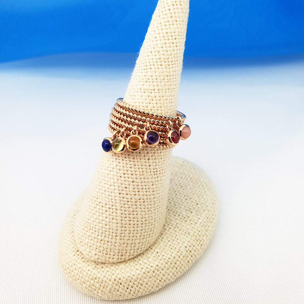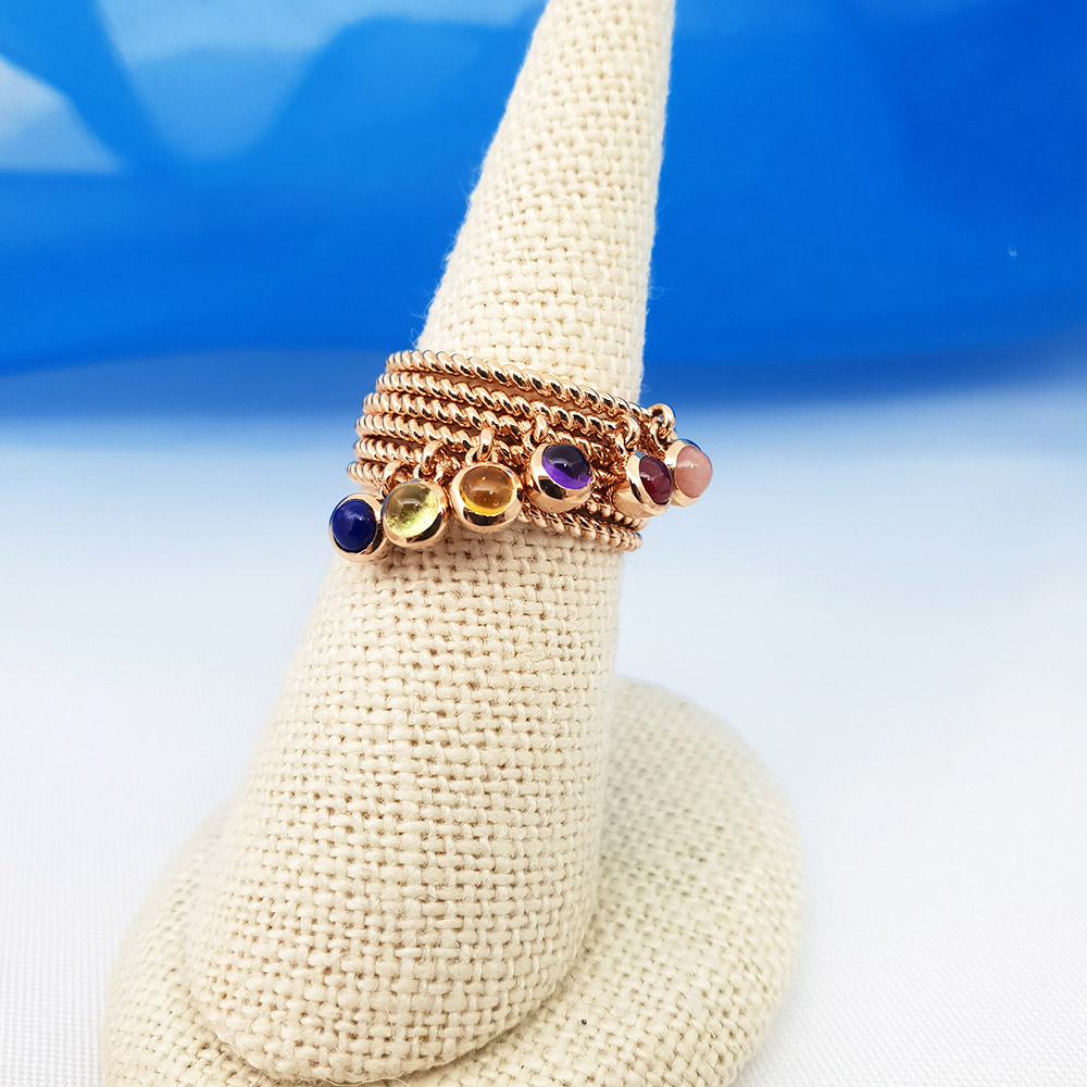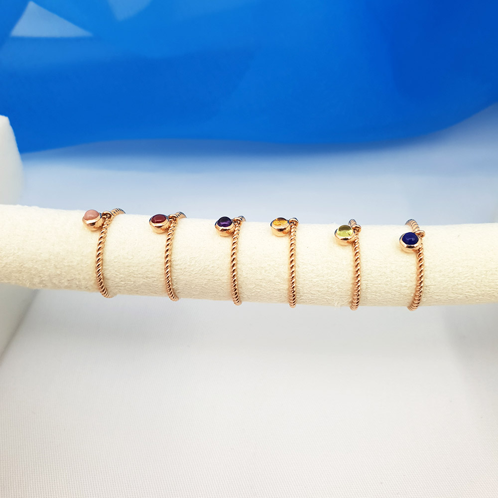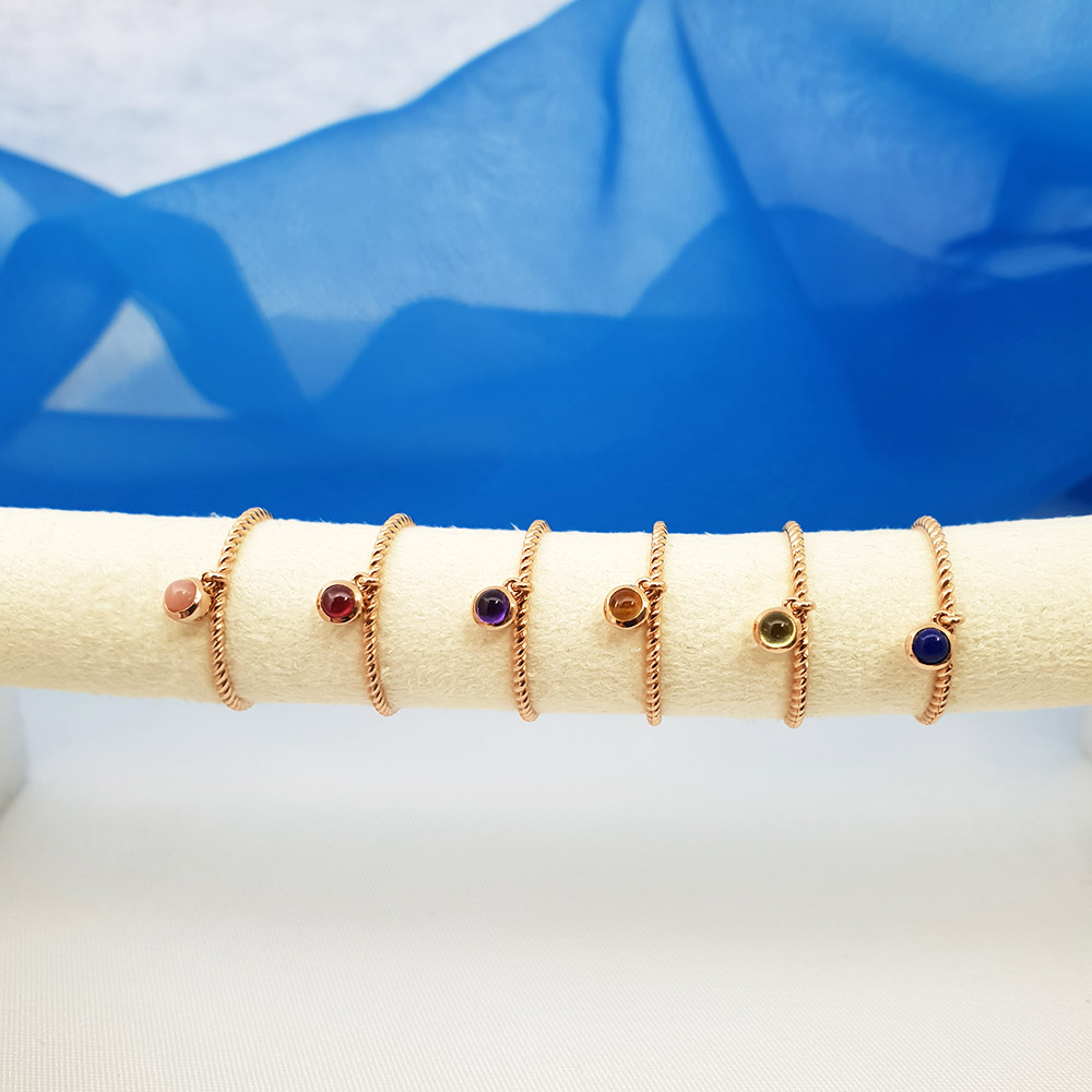 왼쪽부터 - 핑크오팔,루비,자수정,시트린,페리도트,라피스라줄리