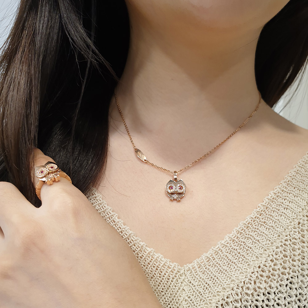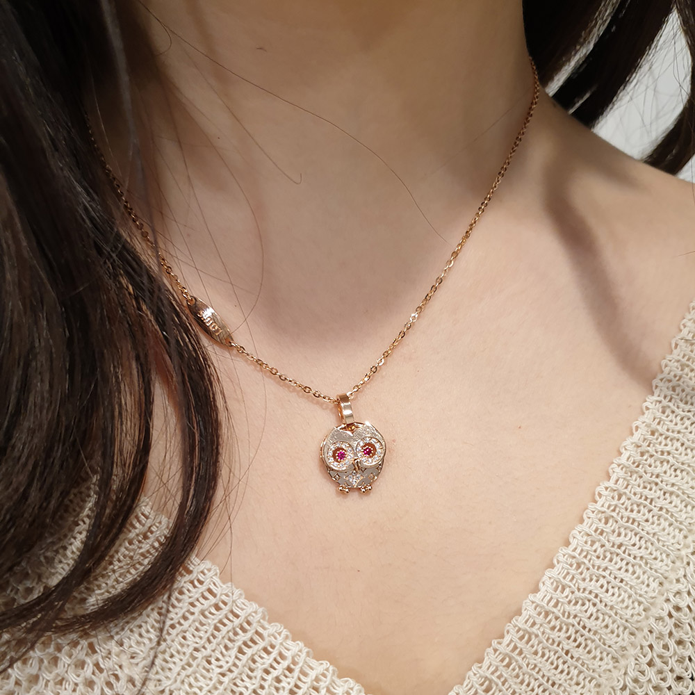 14k 다리가 움지이는 부엉이 네클리스 입니다.