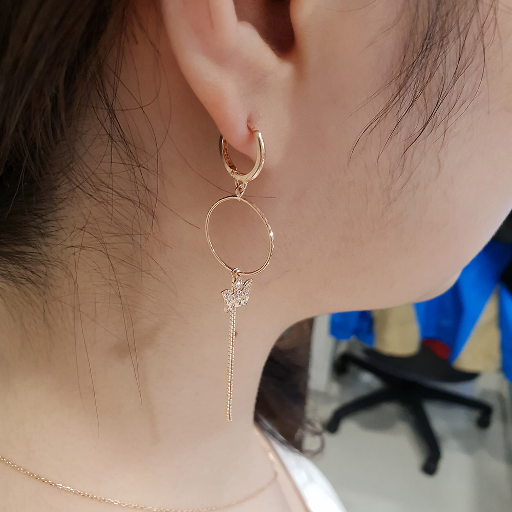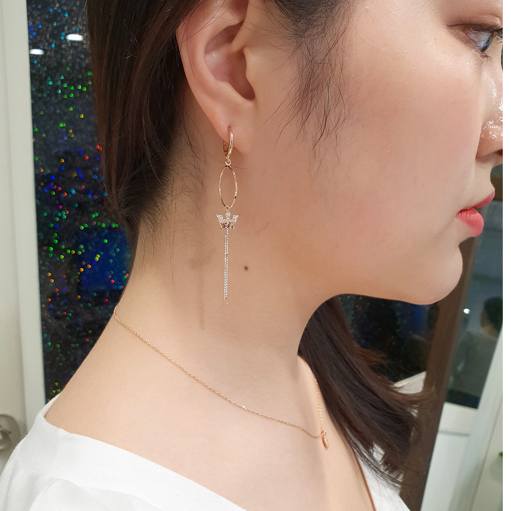 14k 18k 서클 왕관 롱 이어링 입니다.
