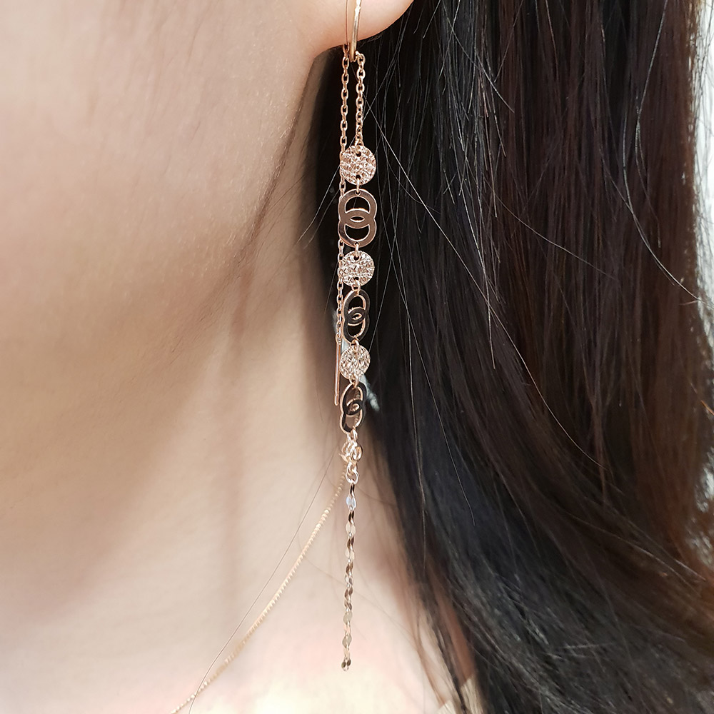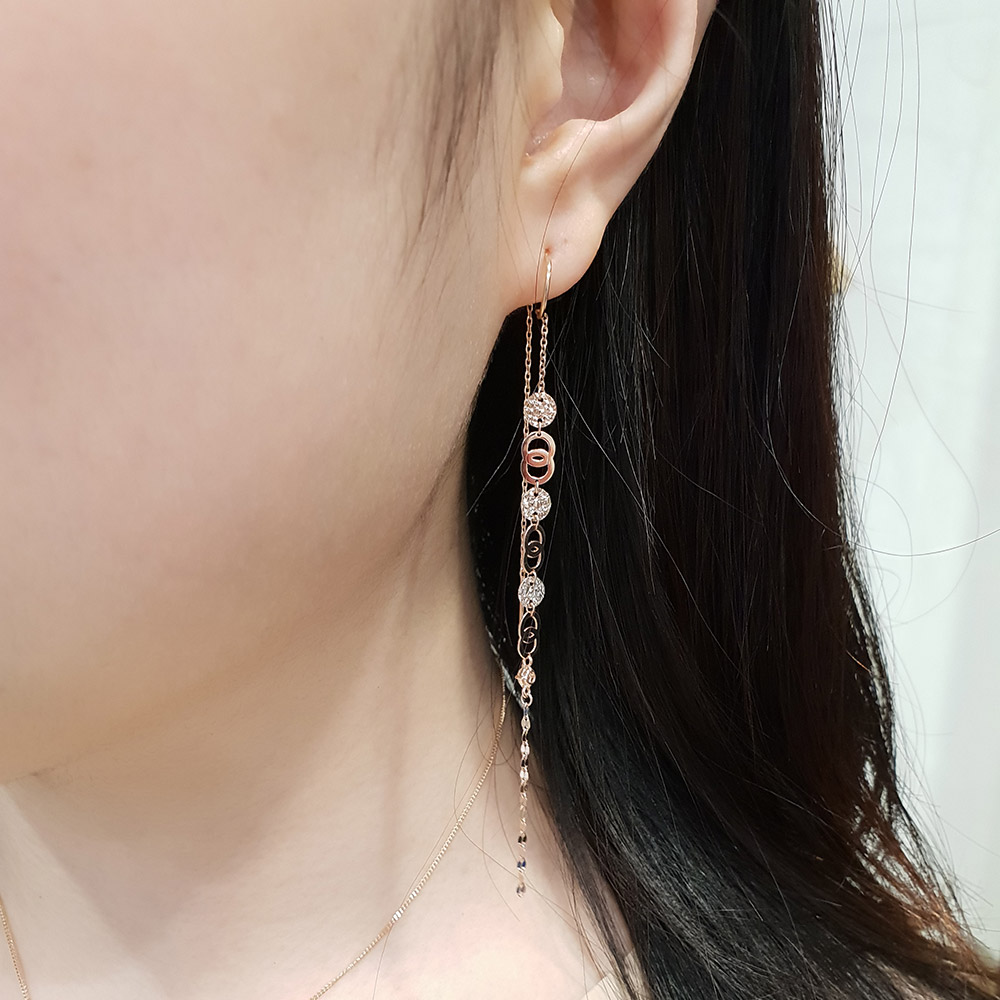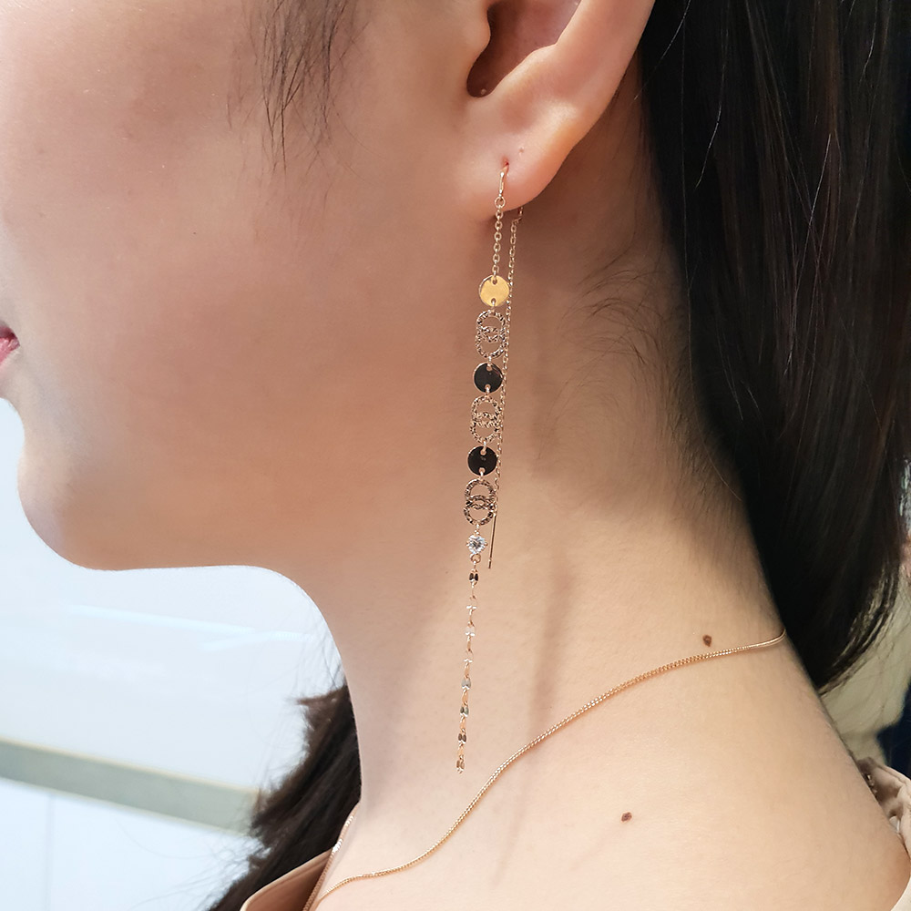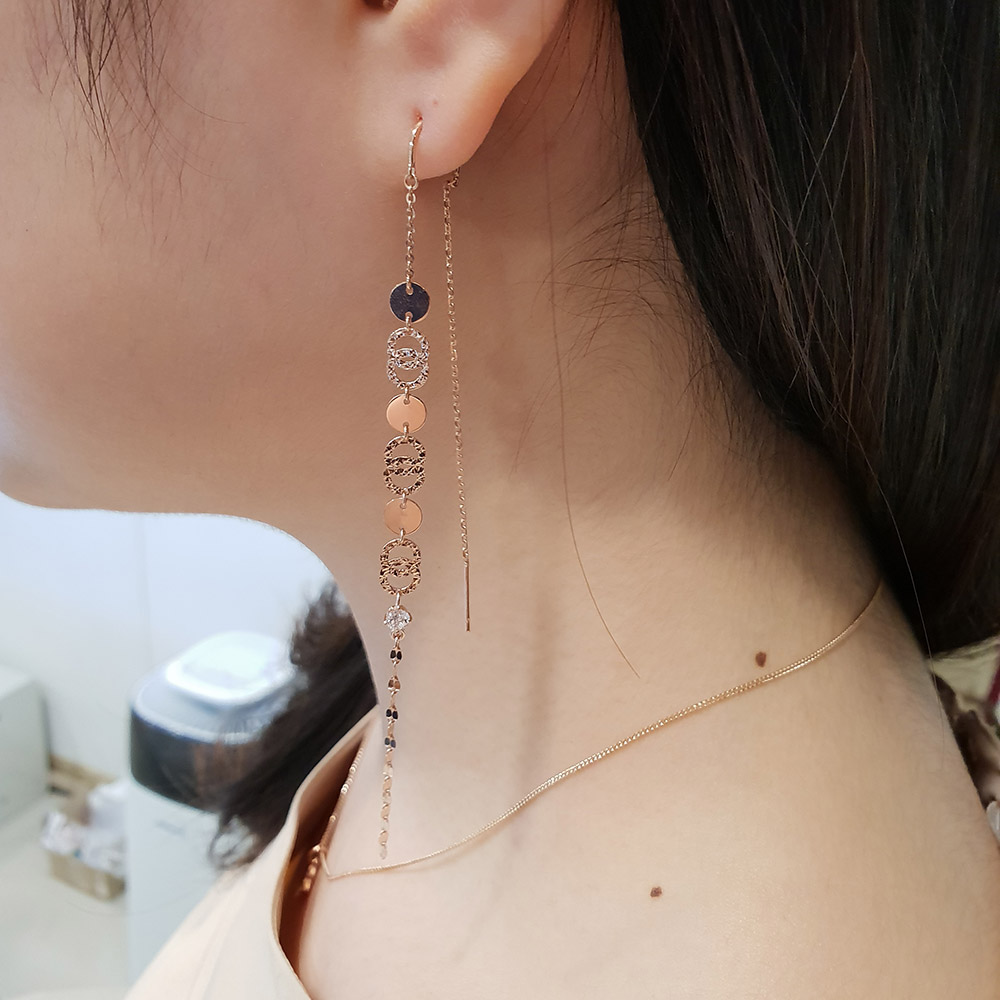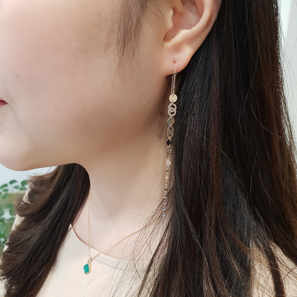 14k 18k 동전 서클 롱 이어링 입니다.