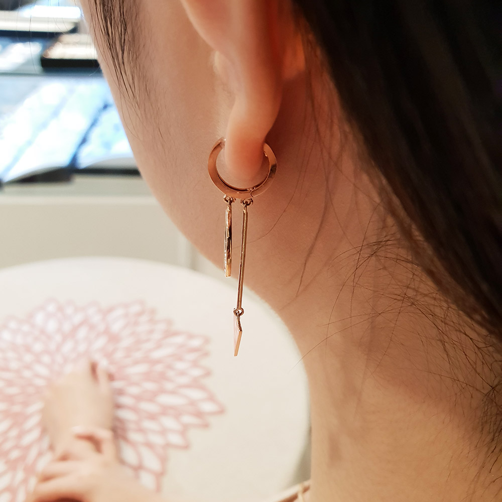 두줄 라인 도형 원터치 이어링 입니다.