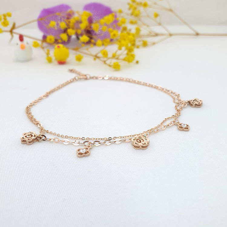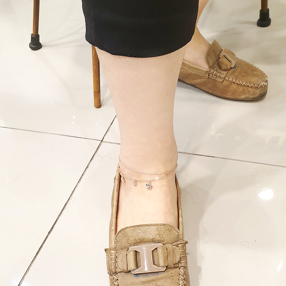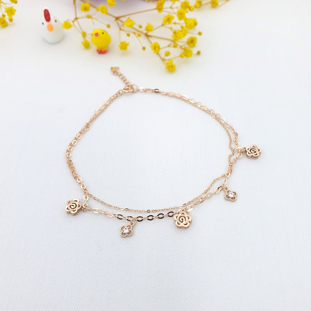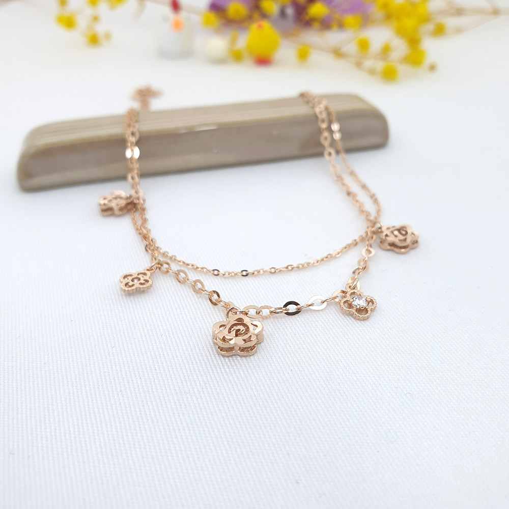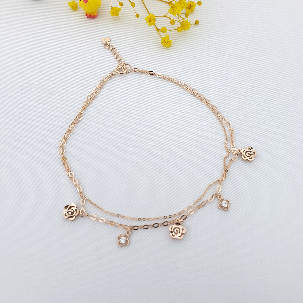 14k 로즈 플라워 두줄 발찌 입니다.