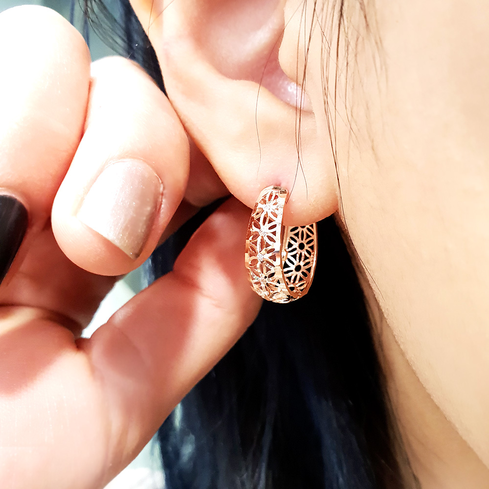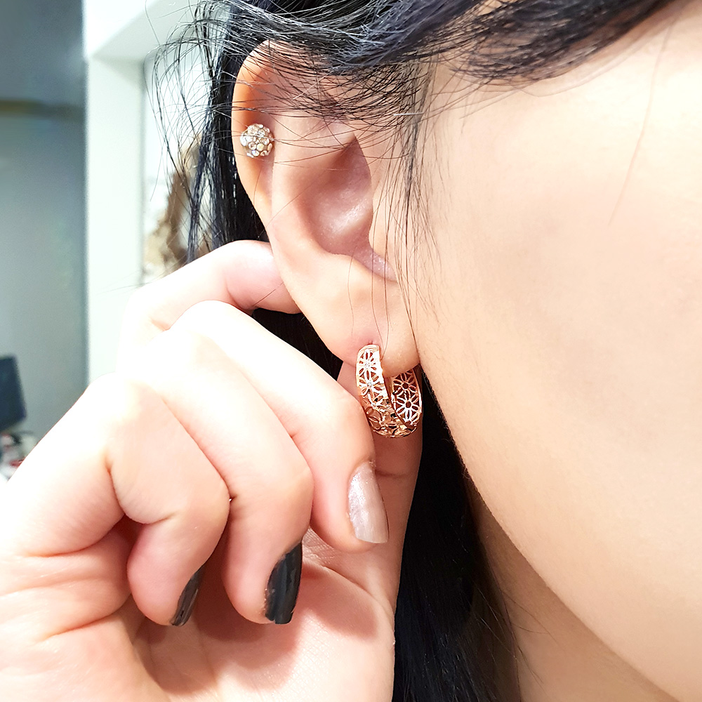14K 18K 망사 플라워 원터치 이어링 입니다.