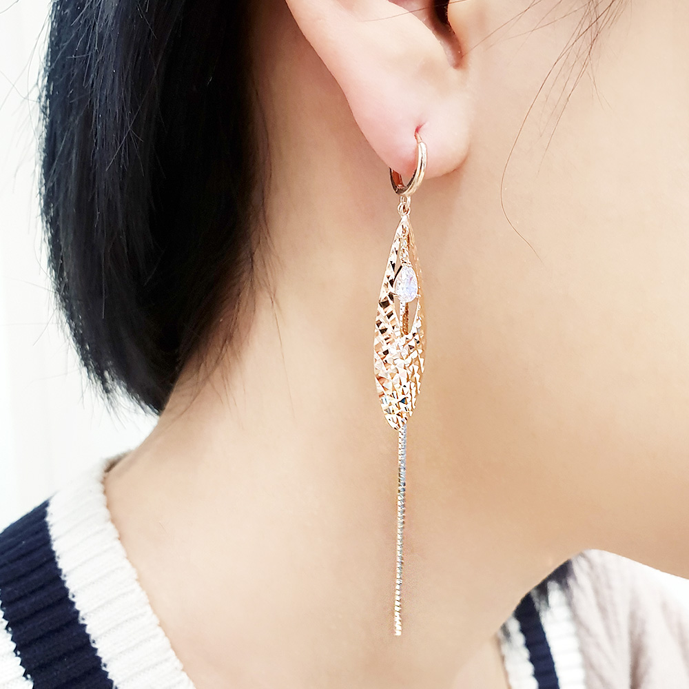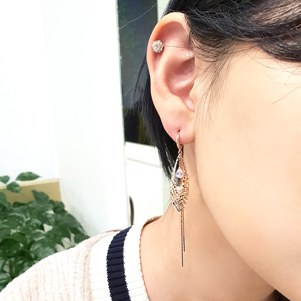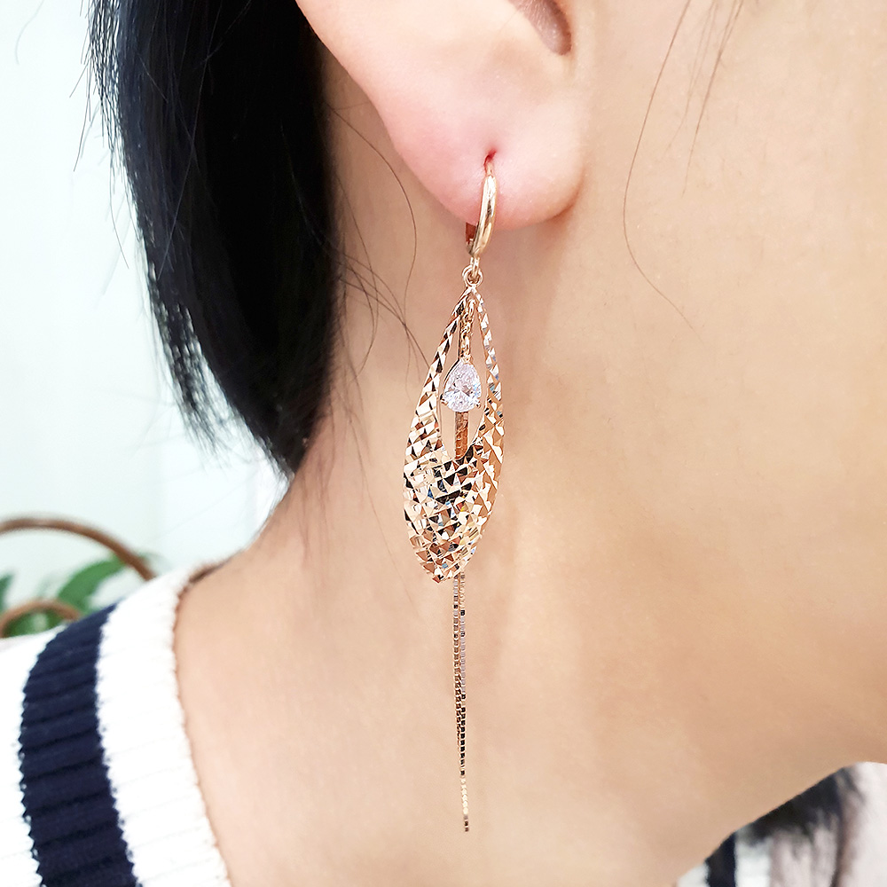 14K 18K 물방울 두줄 롱 이어링 입니다.
