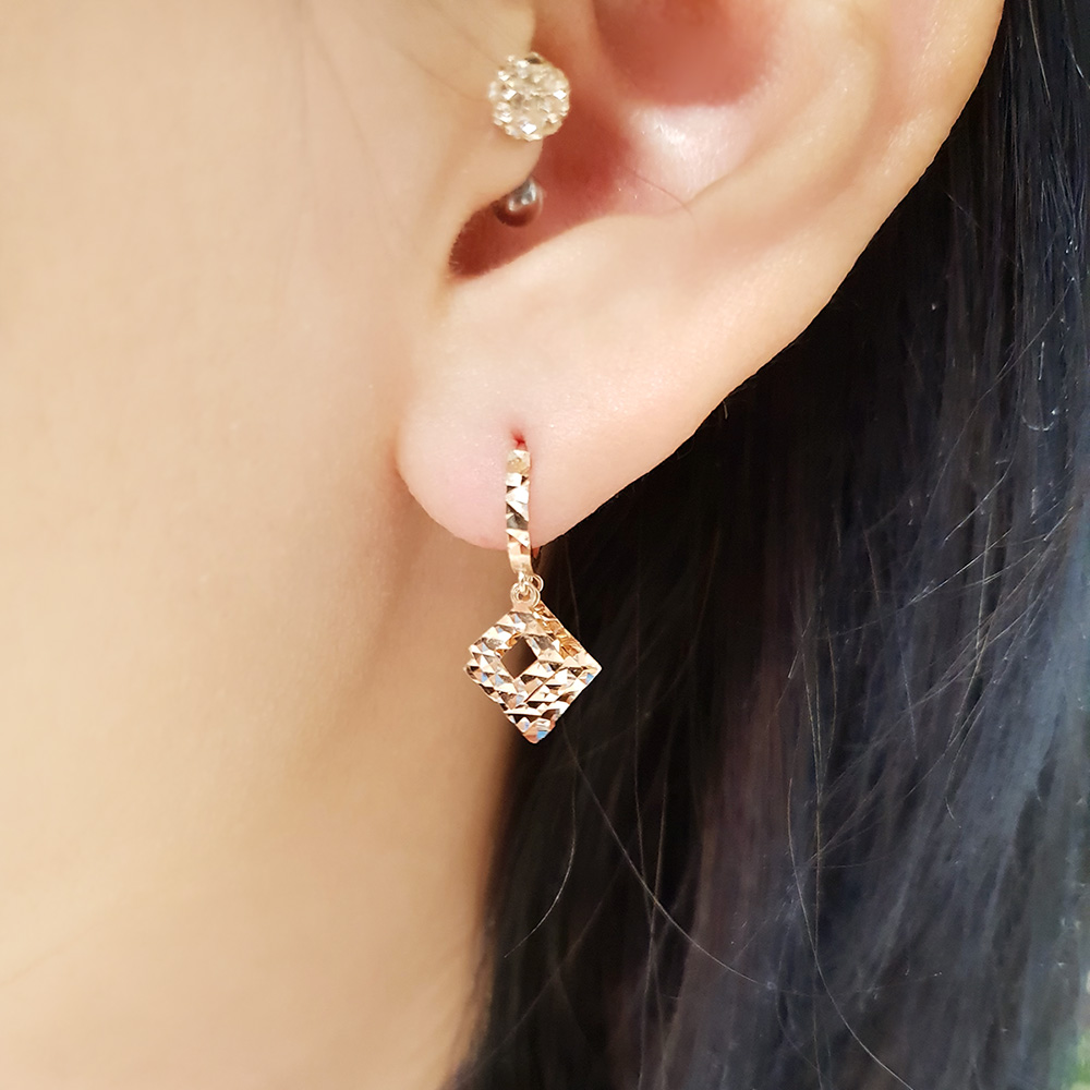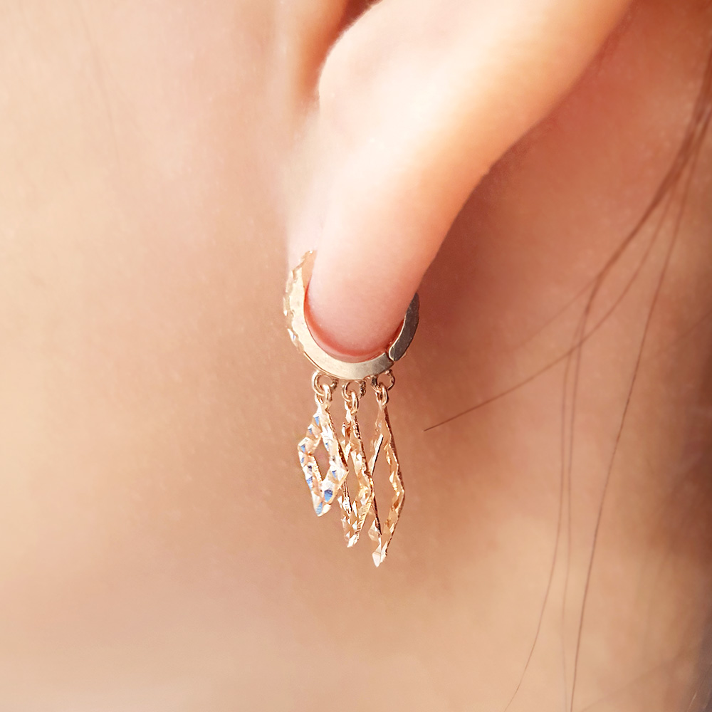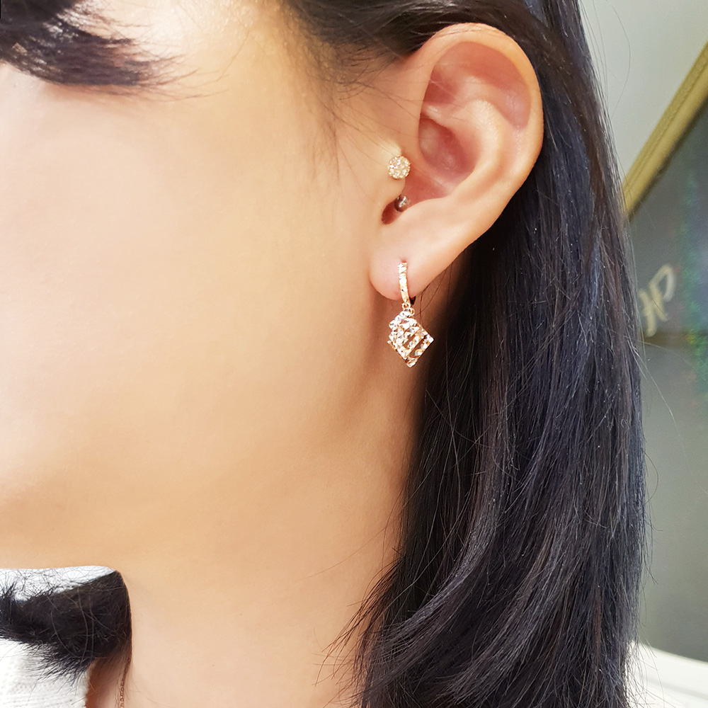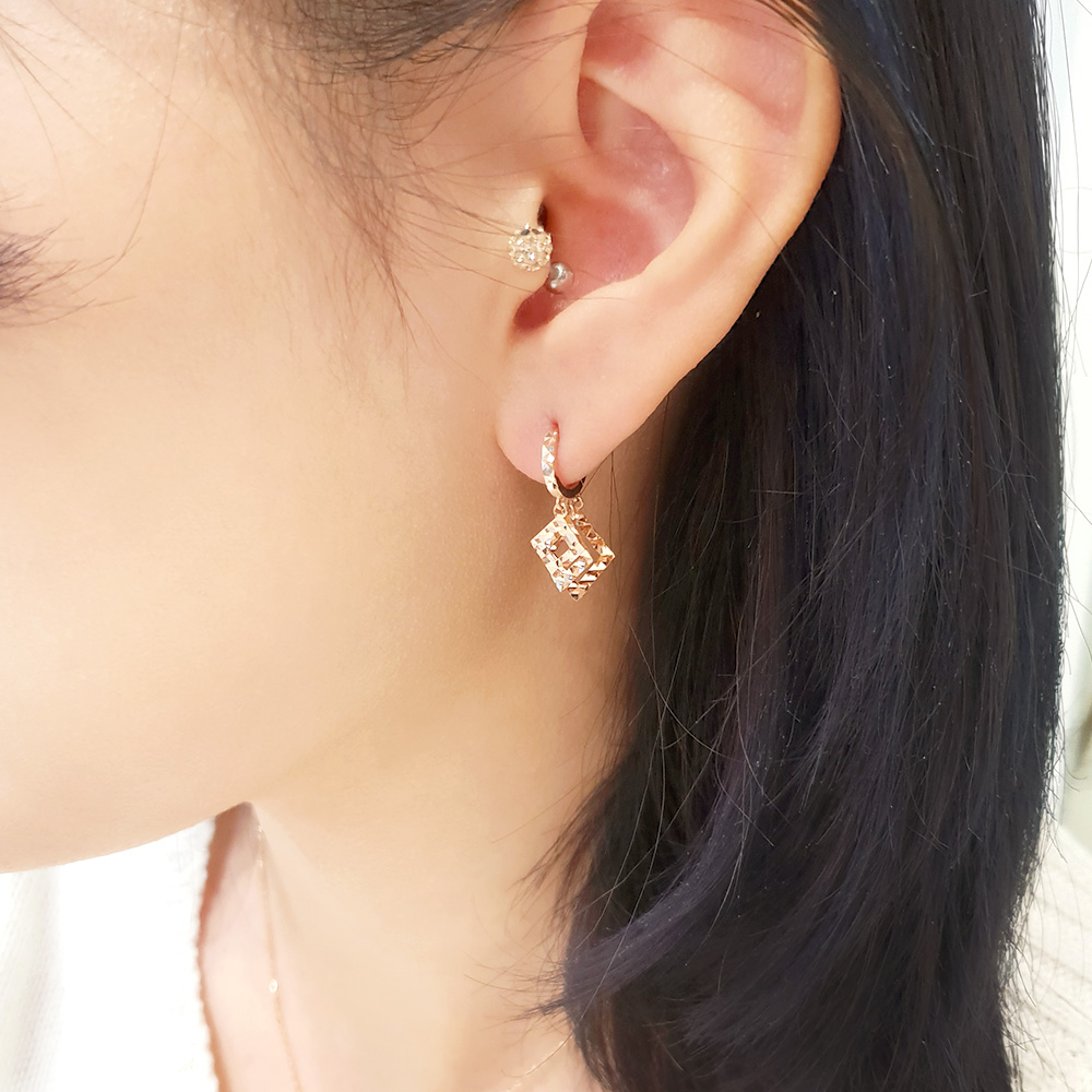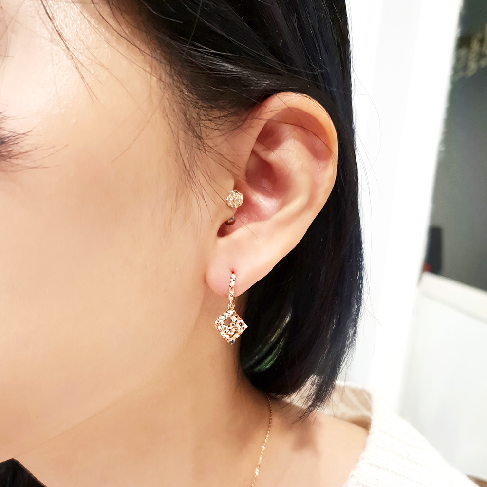 크기별로 스퀘어를 연결한 원터치 이어링으로