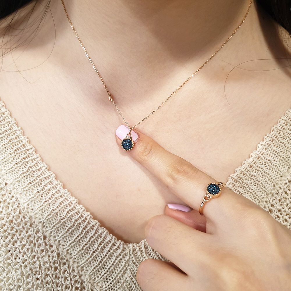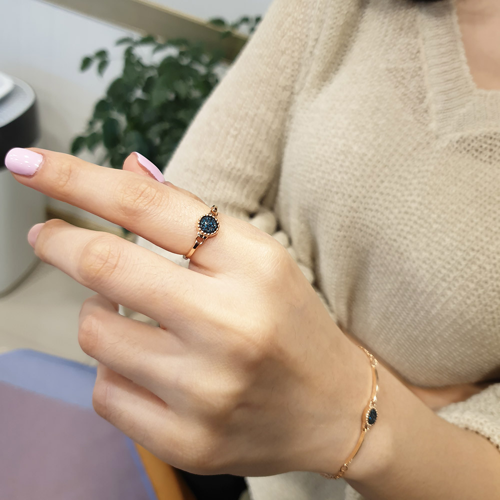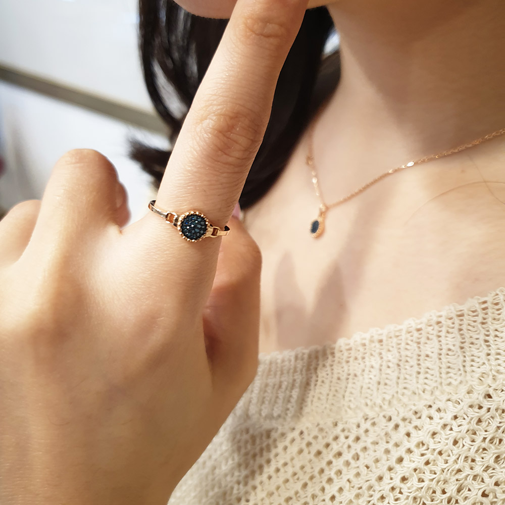 볼드한 서클에 청다이아를 세팅하고