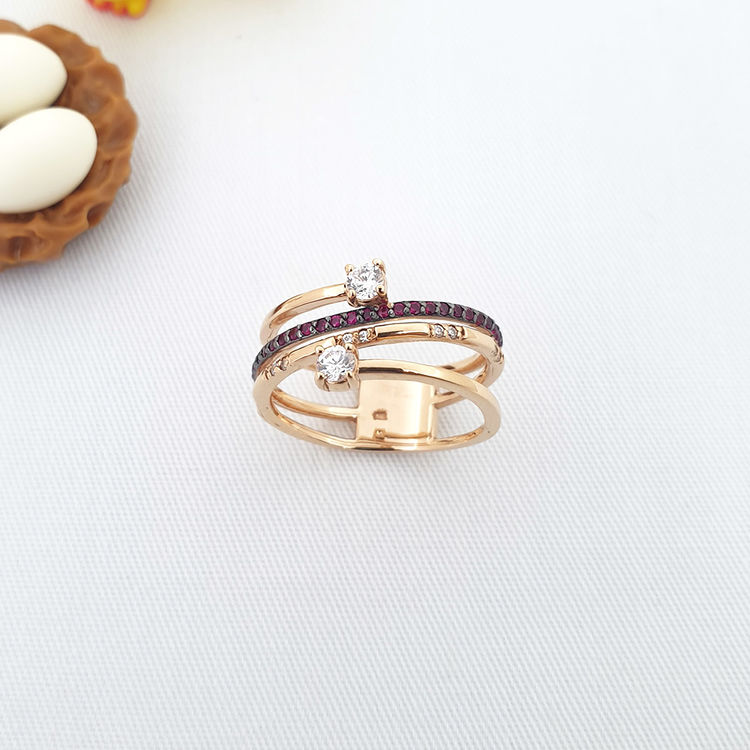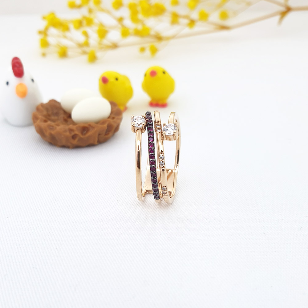 14k네줄 루비스톤 크로스 반지 입니다.