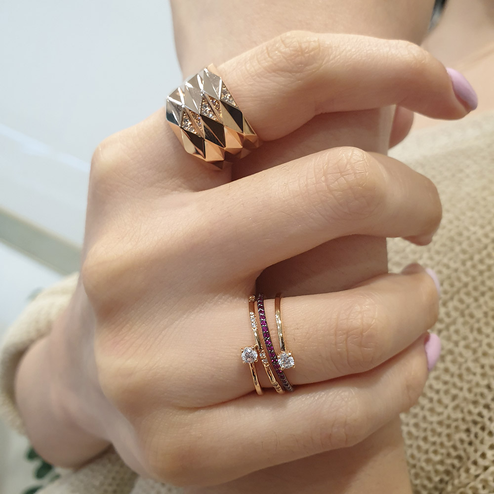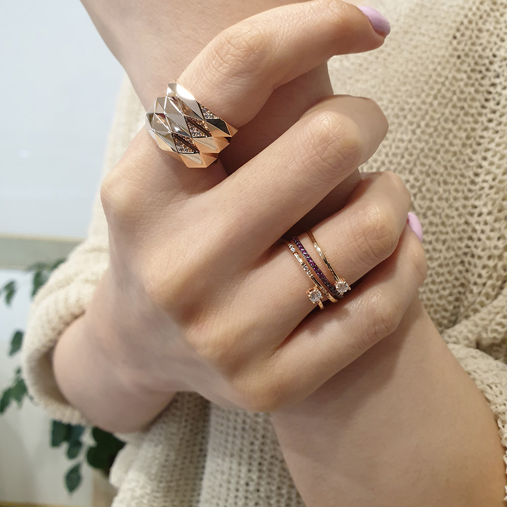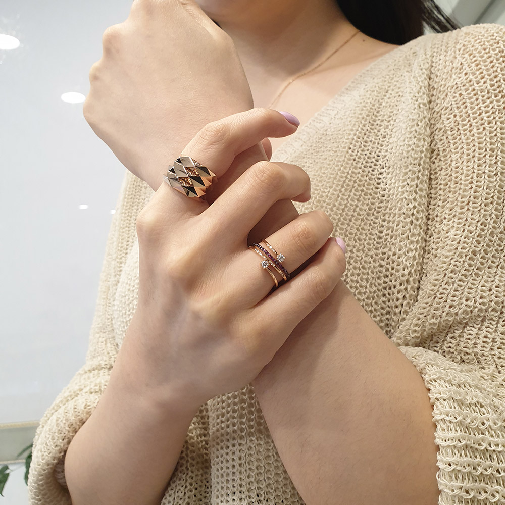 그리고 얇은 레이어드 반지 같이 착용하시면