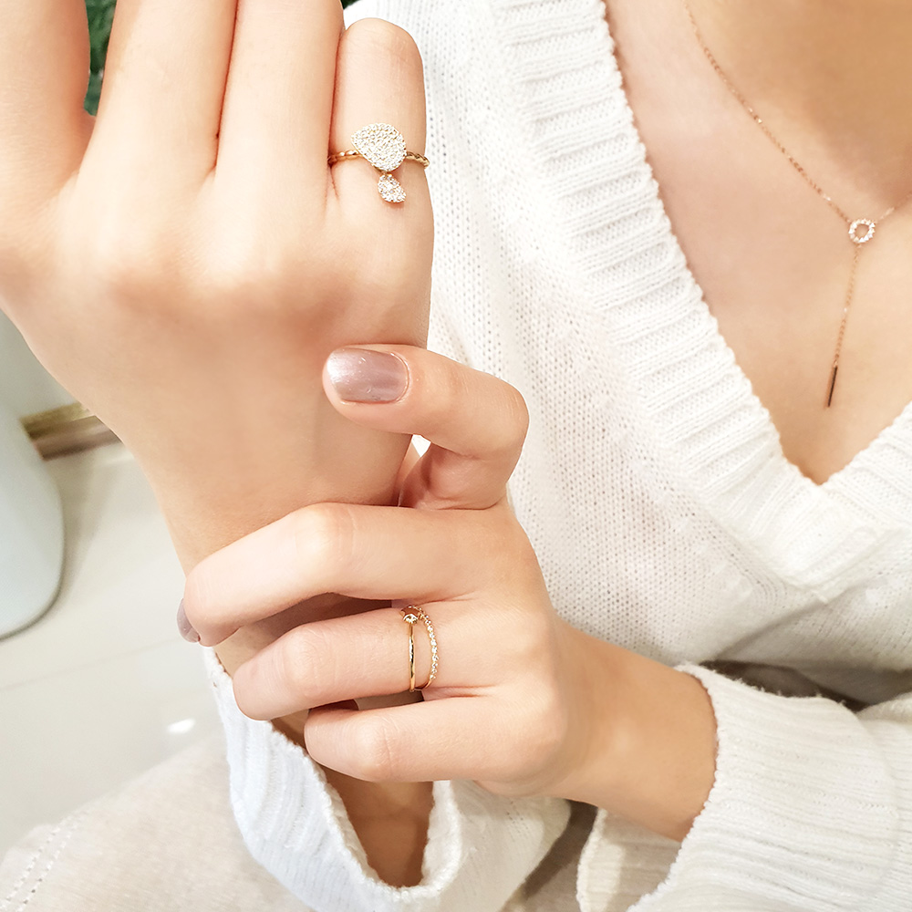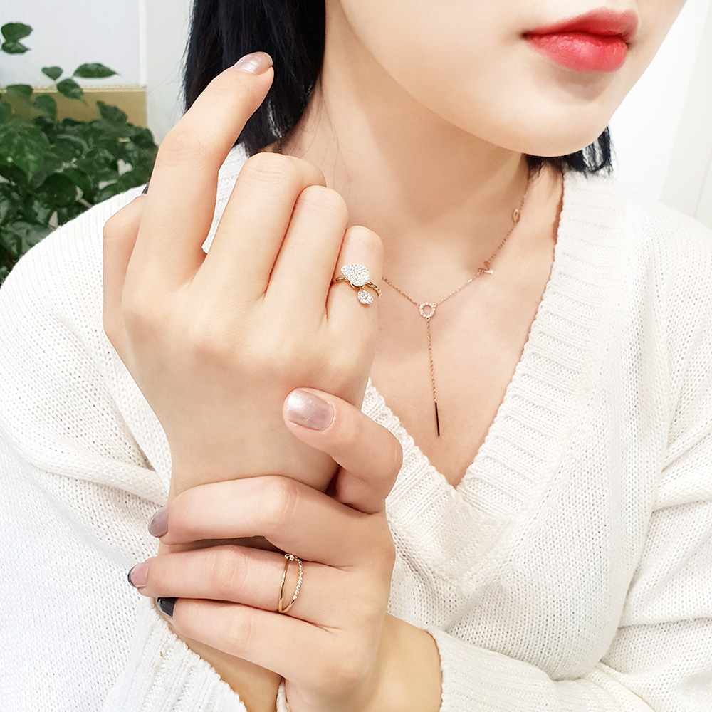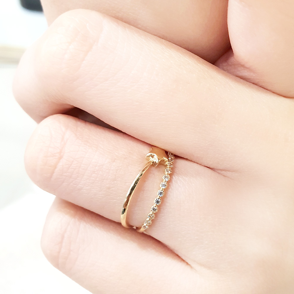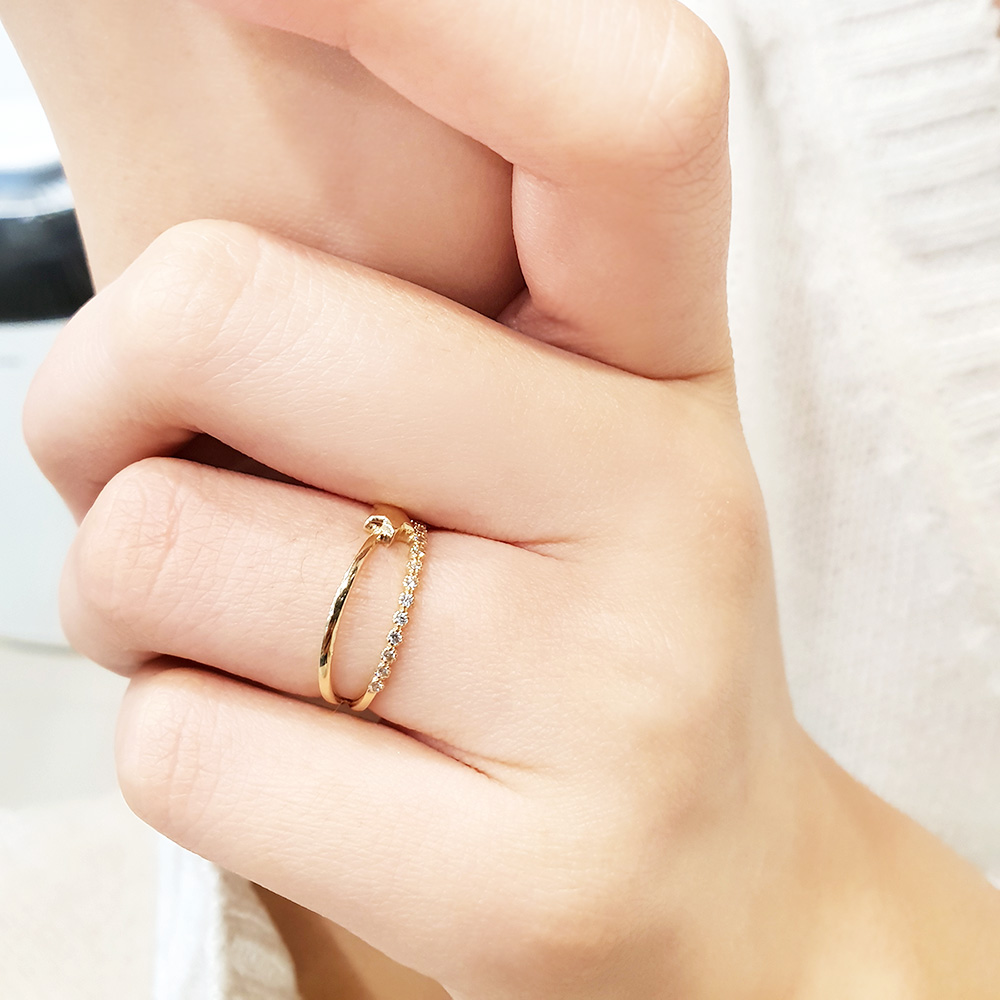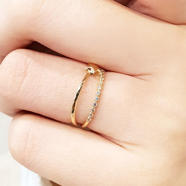 두줄라인 반지로 한줄은 스톤으로 세팅하고