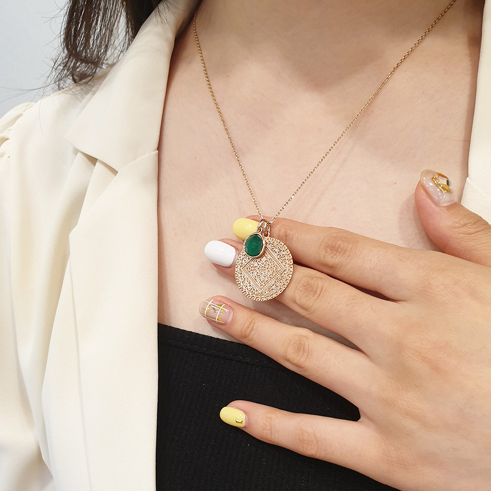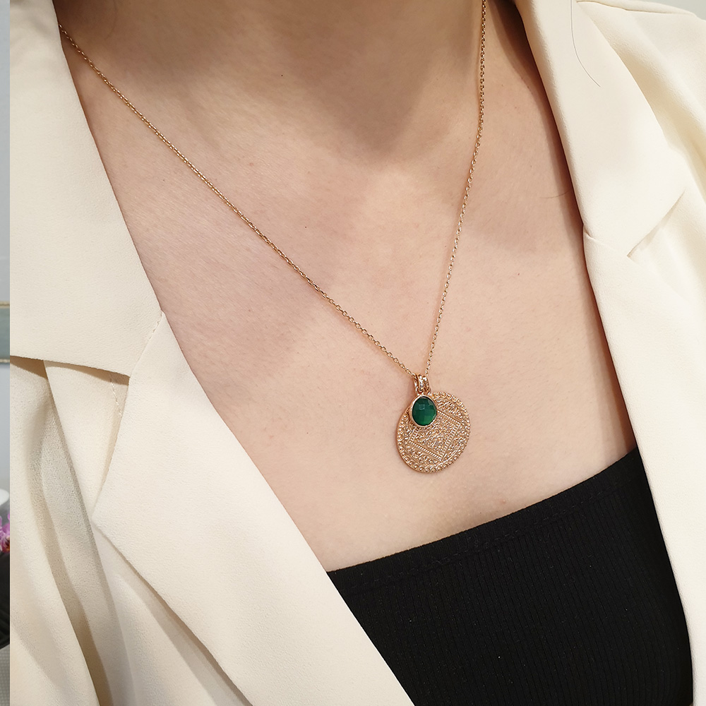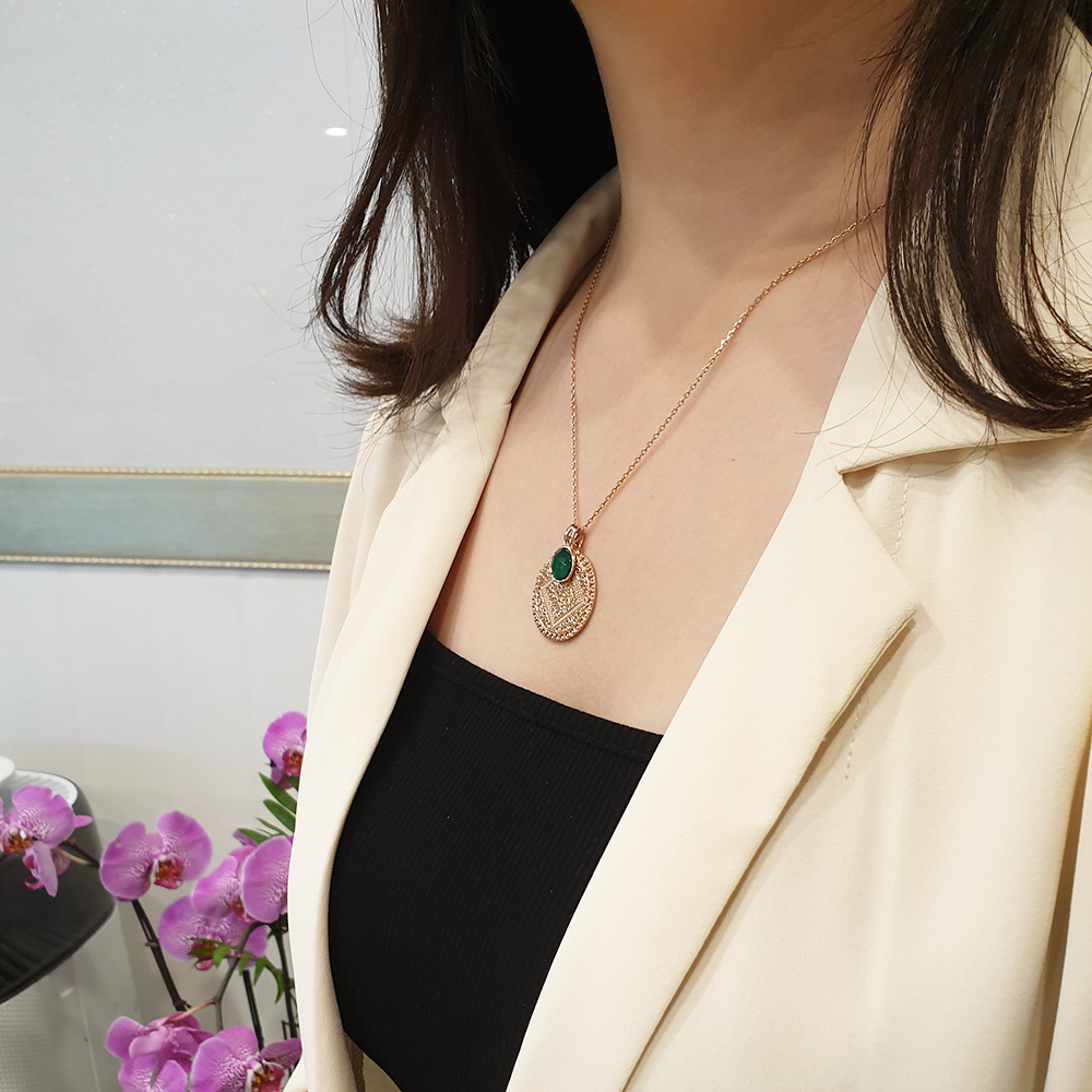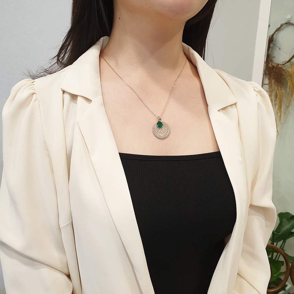 14k 18k 고급무늬 서클 그린오닉스 네클리스 입니다.