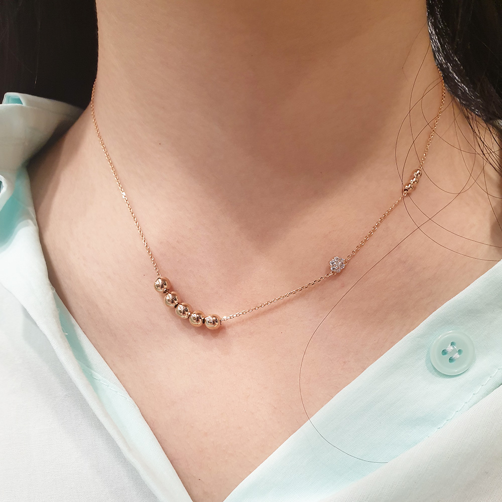 목걸이 옆라인에 스톤이 세팅된 플라워 참과
