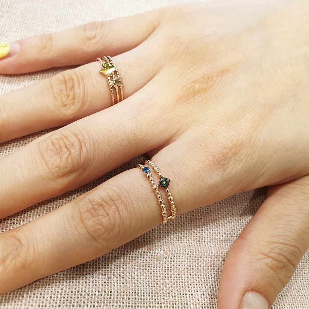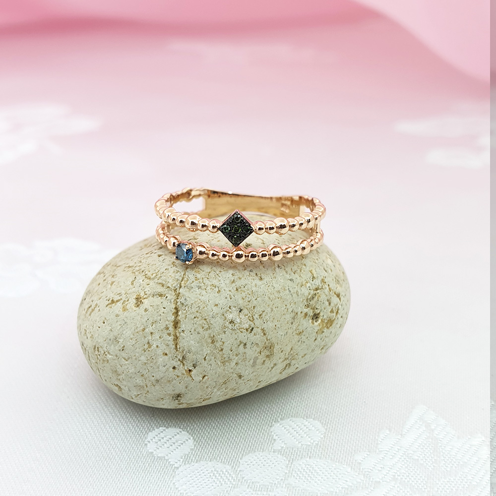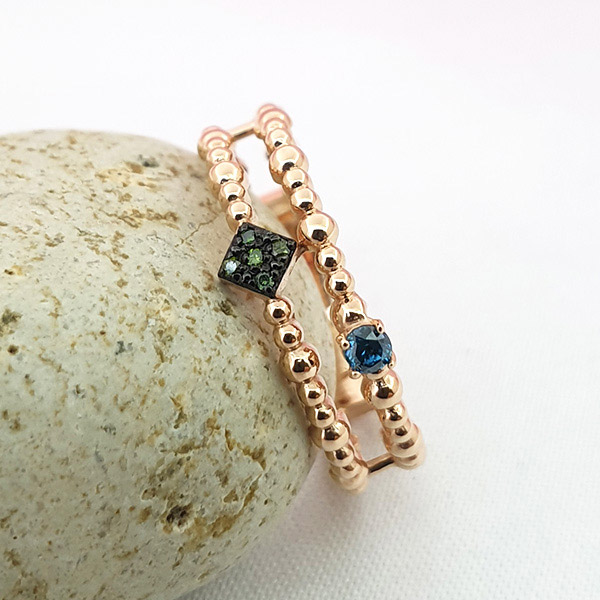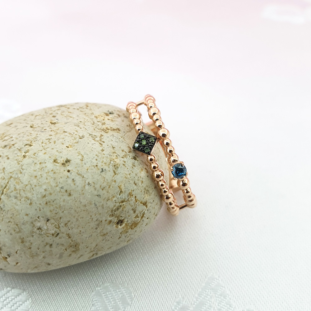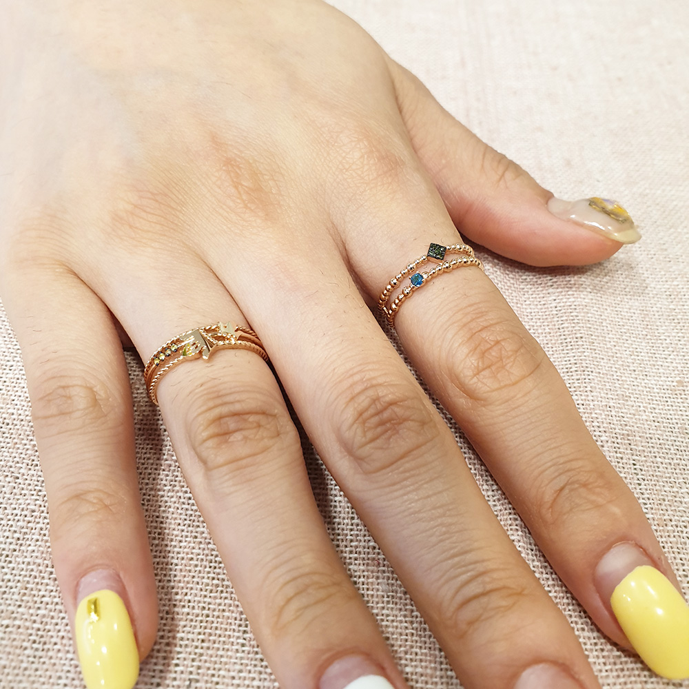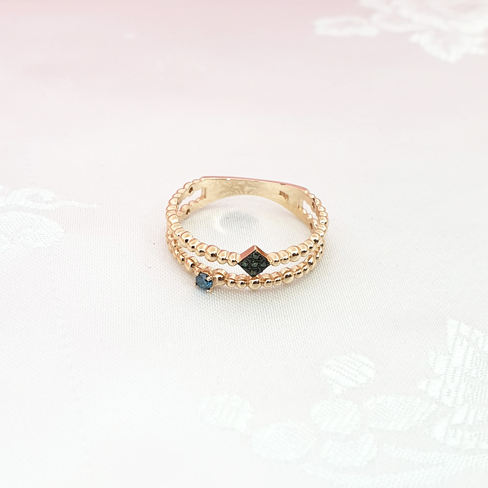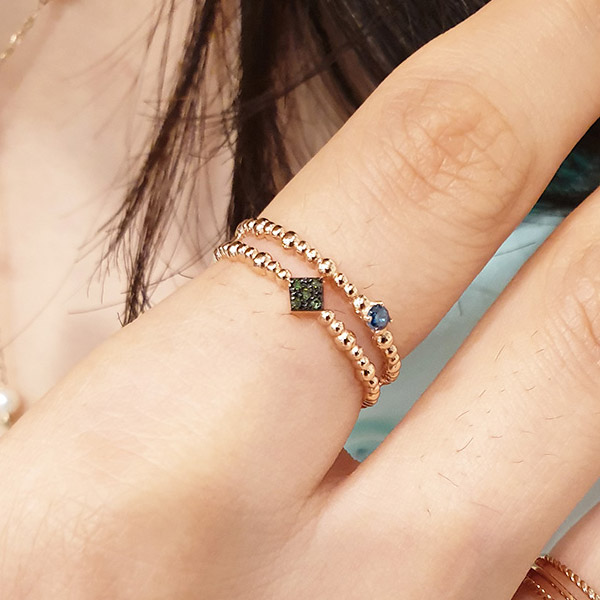 14k 볼 두줄 그린다이아 반지 입니다.