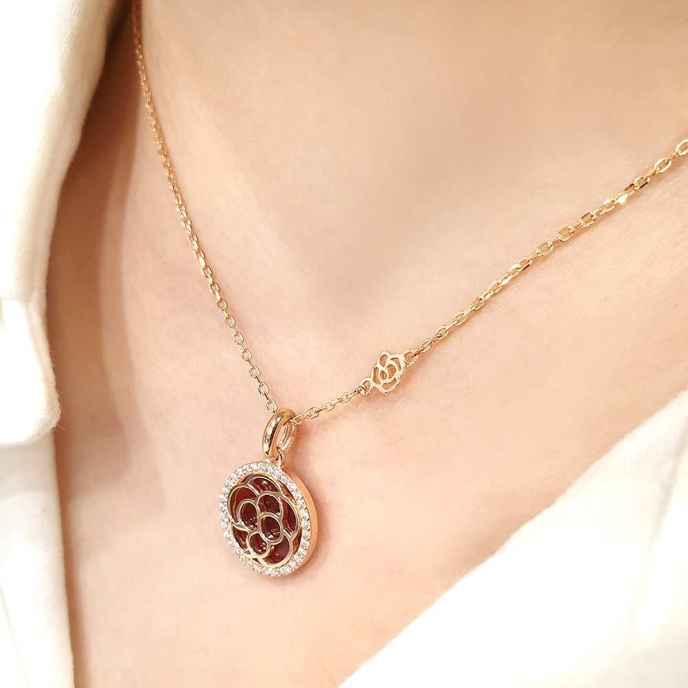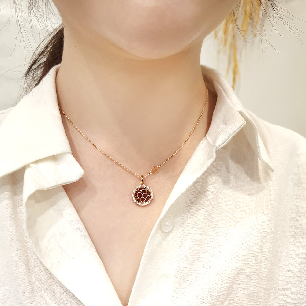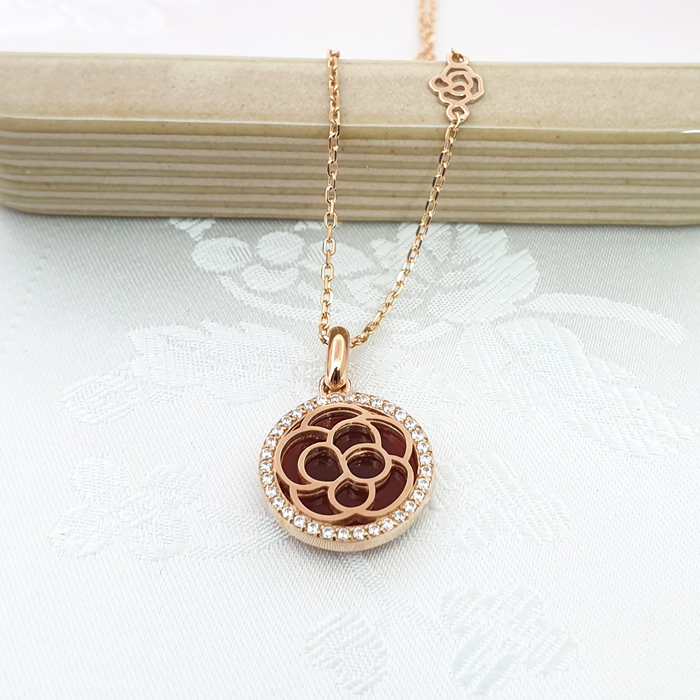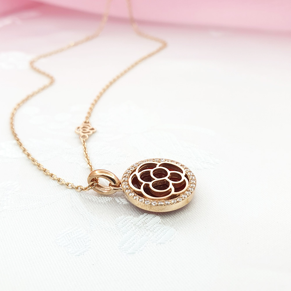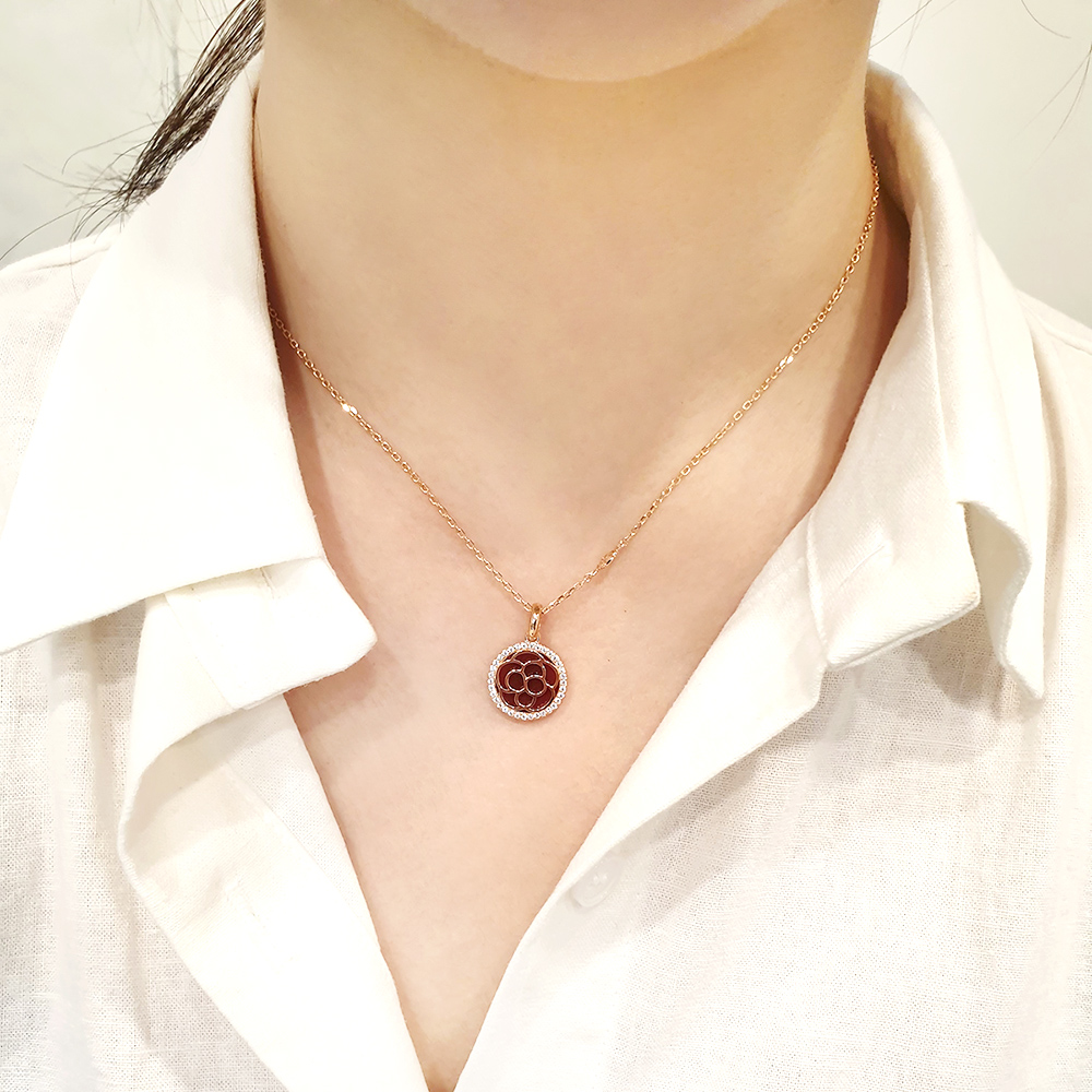 14k 로즈장미 자마노 양면 목걸이 입니다.