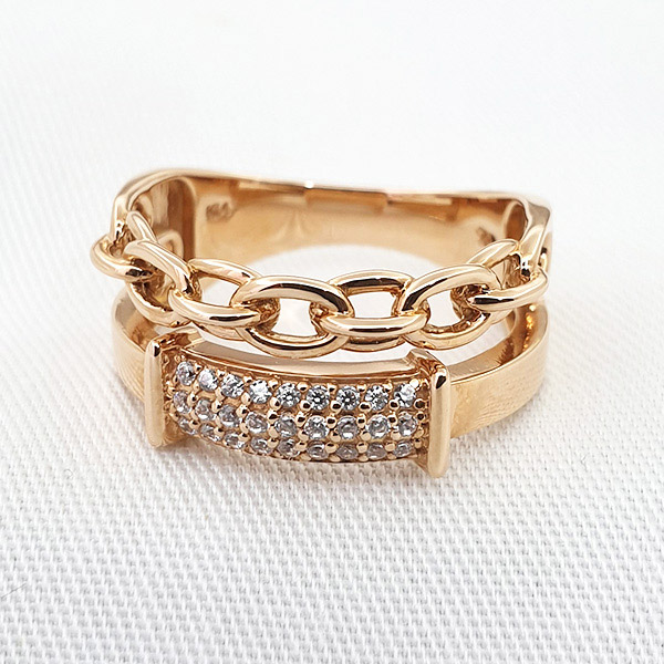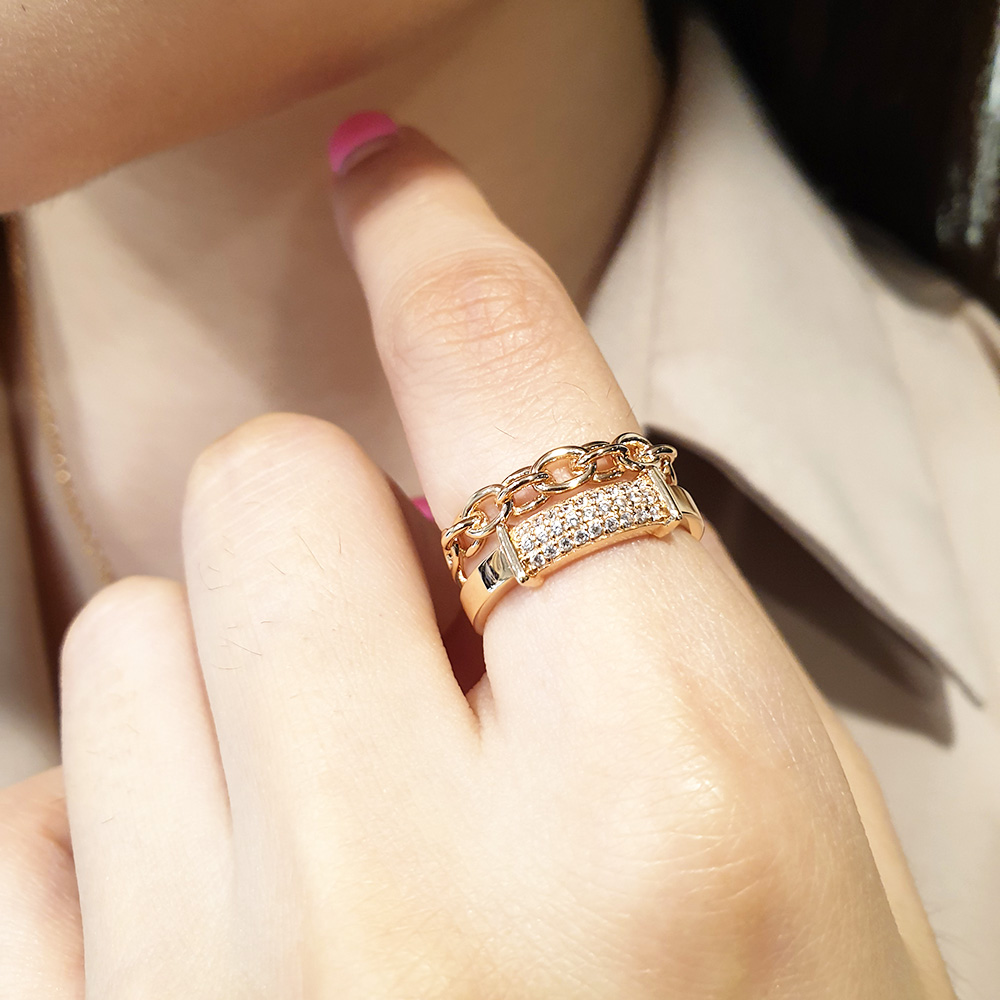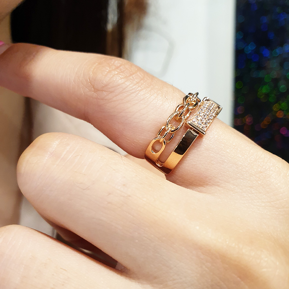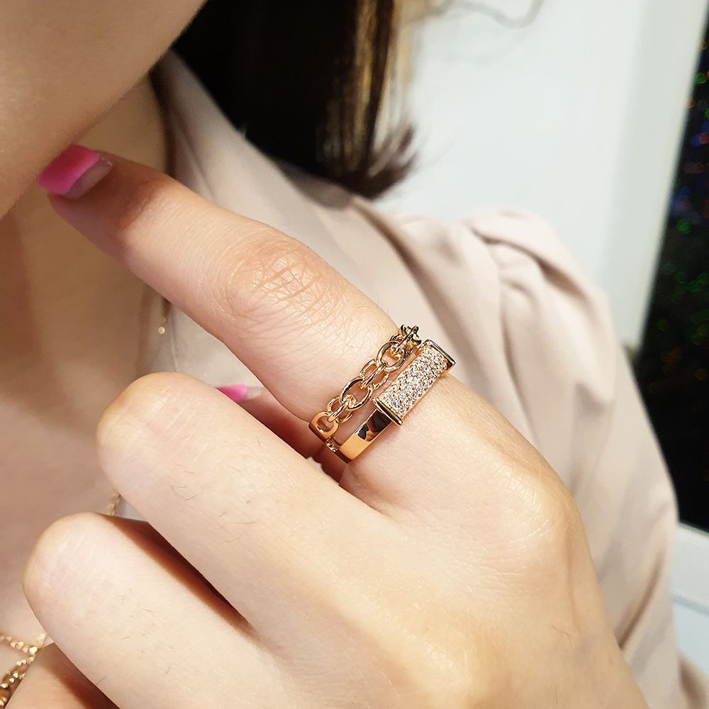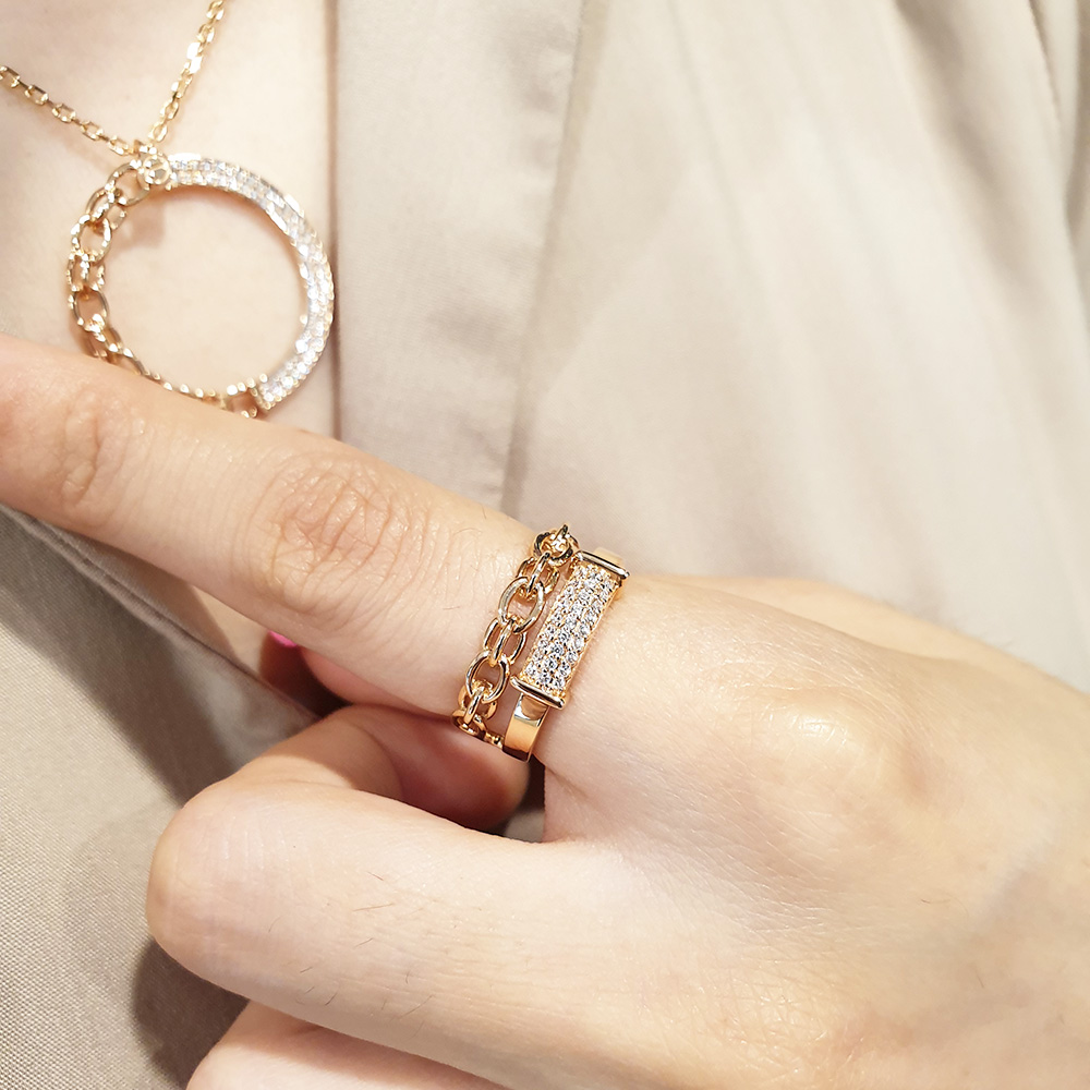 14k 두줄 체인 스톤 반지 입니다.