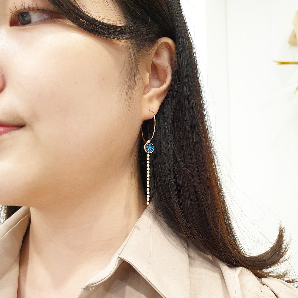 메인 스톤 : 청큐빅지르코니아 38EA (청스톤 발부분 블랙도금되어있으며 물에 노출시 색상이 연해질수 있습니다)