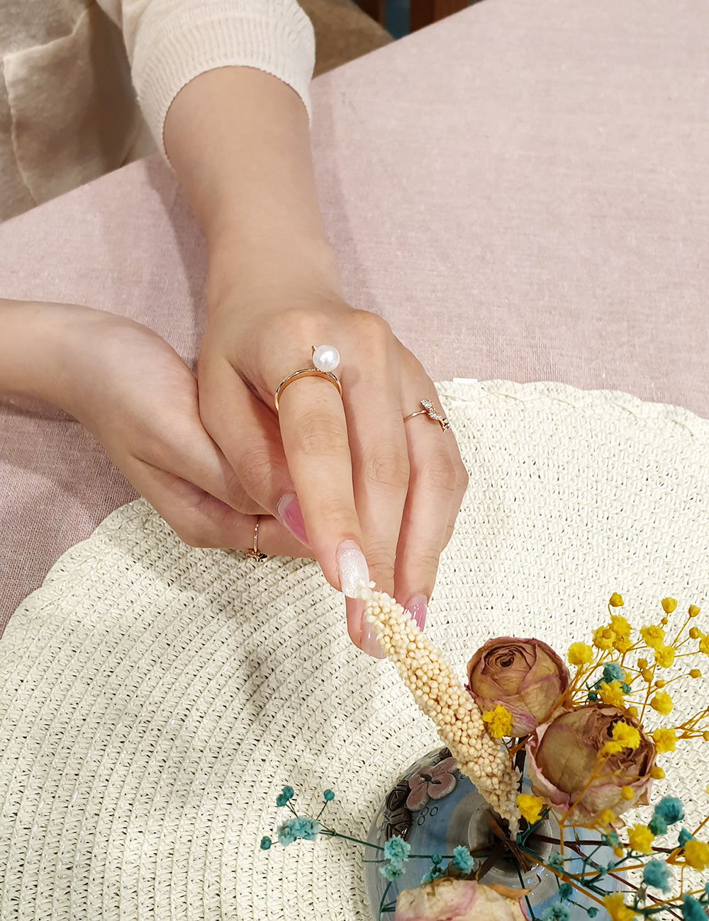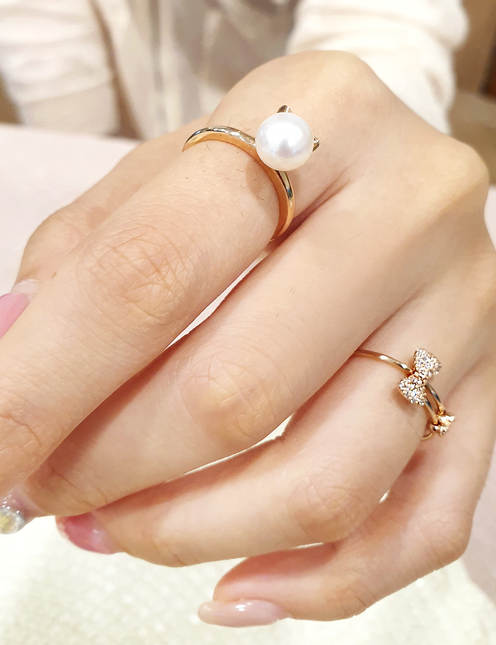 8mm 진주를 사용한 반지로