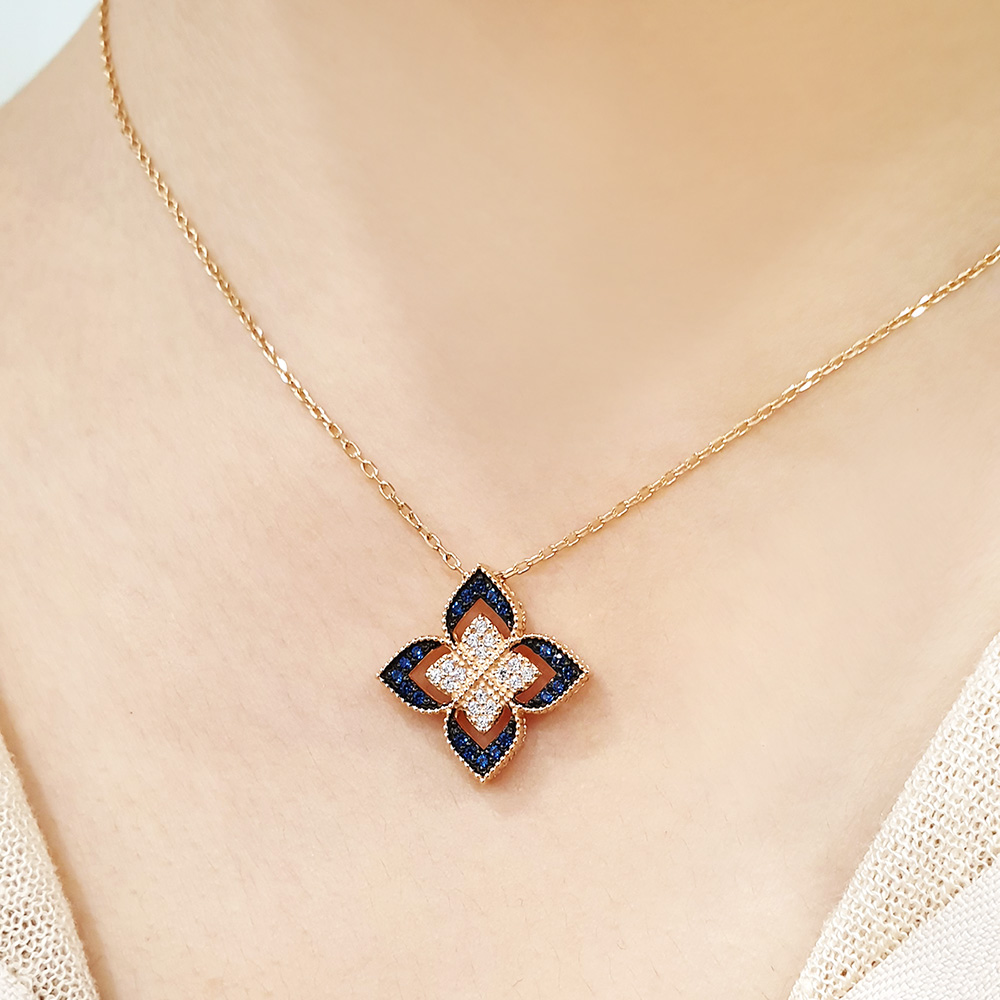 테두리 청다이아 스톤으로 쎄팅한 꽃잎이