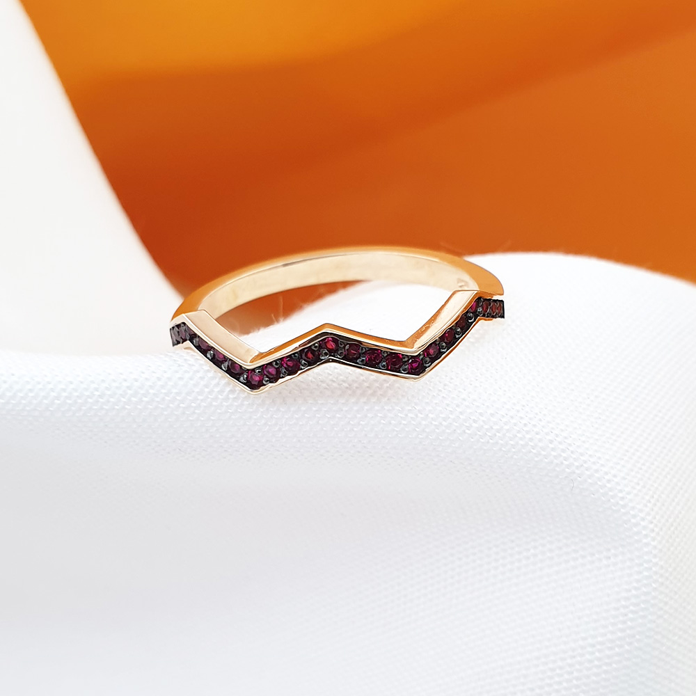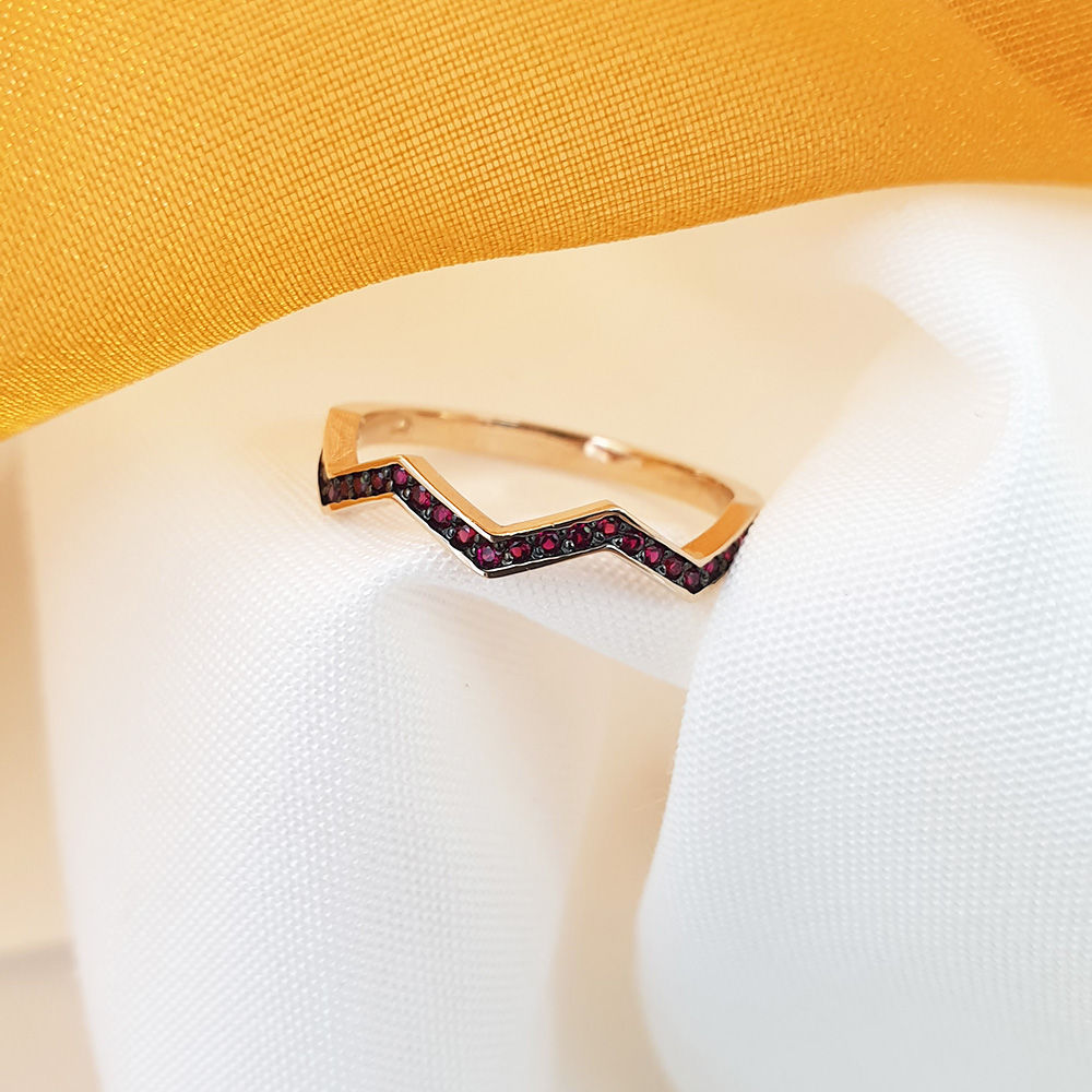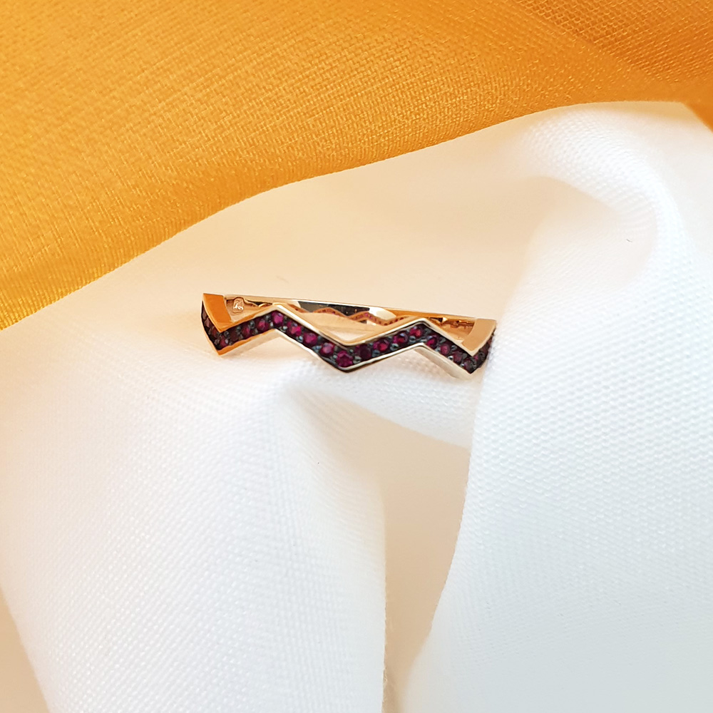 지그재그모양 링에 루비를 세팅한 반지로