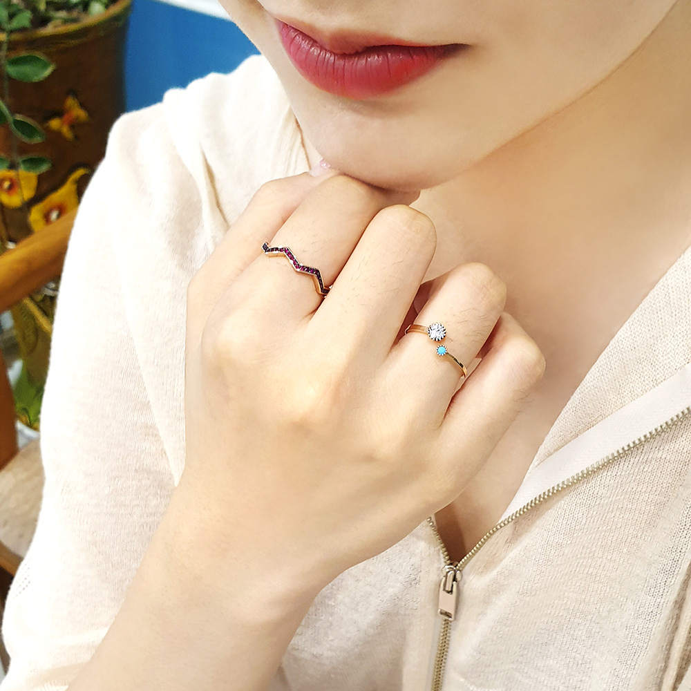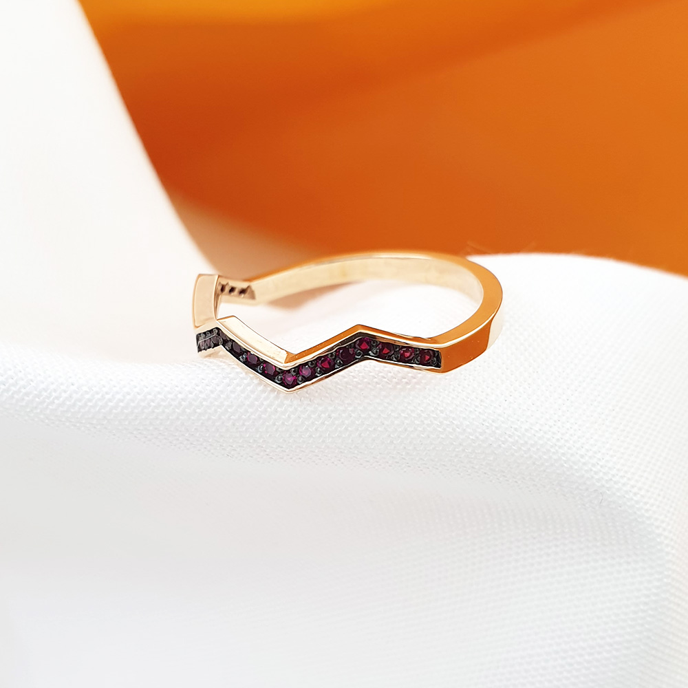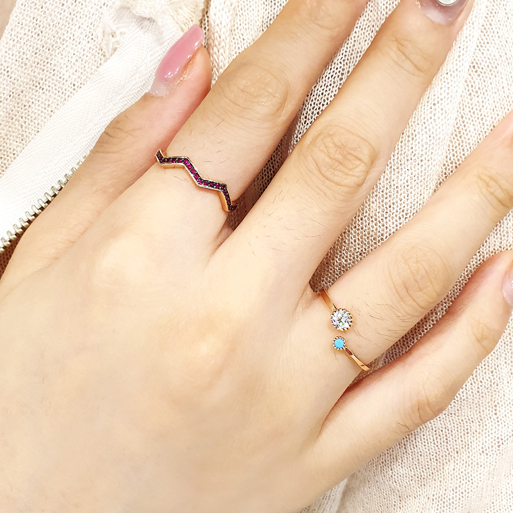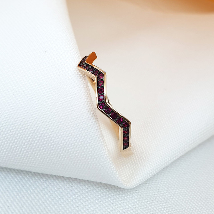 지그재그모양 링에 루비를 세팅한 반지로