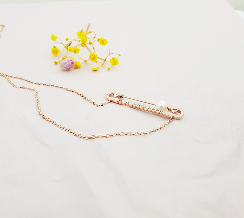 14k 그린다이아 진주옷핀 목걸이