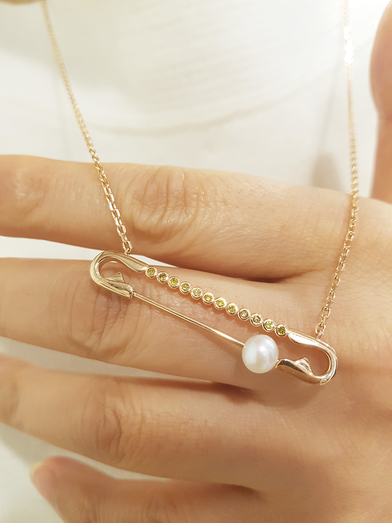 유니크한 옷핀모양에 담수진주가 달려있어