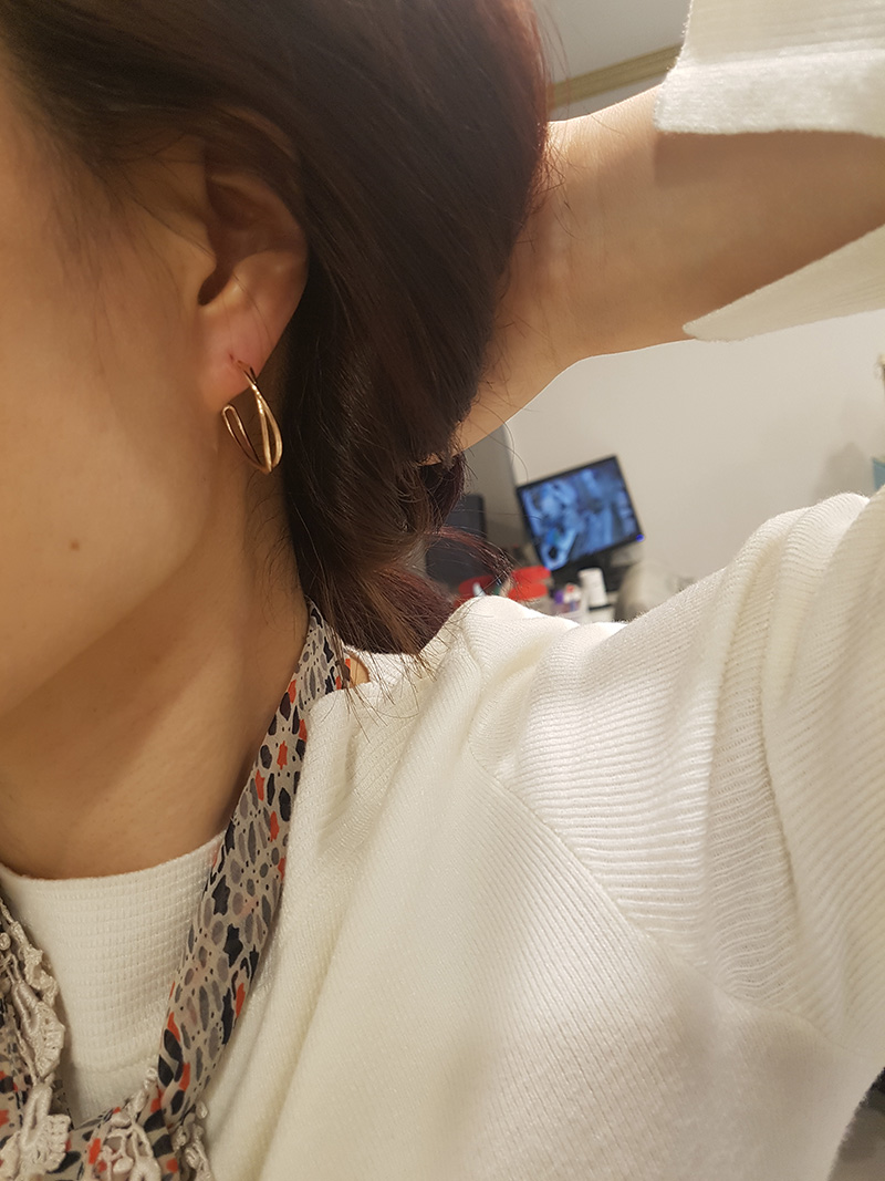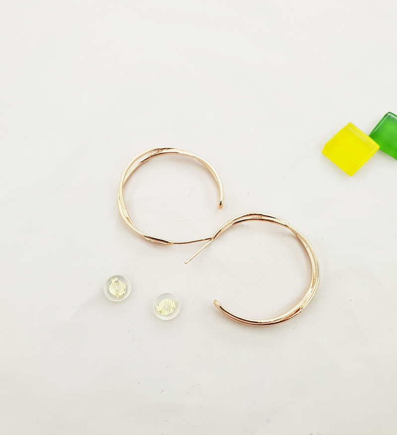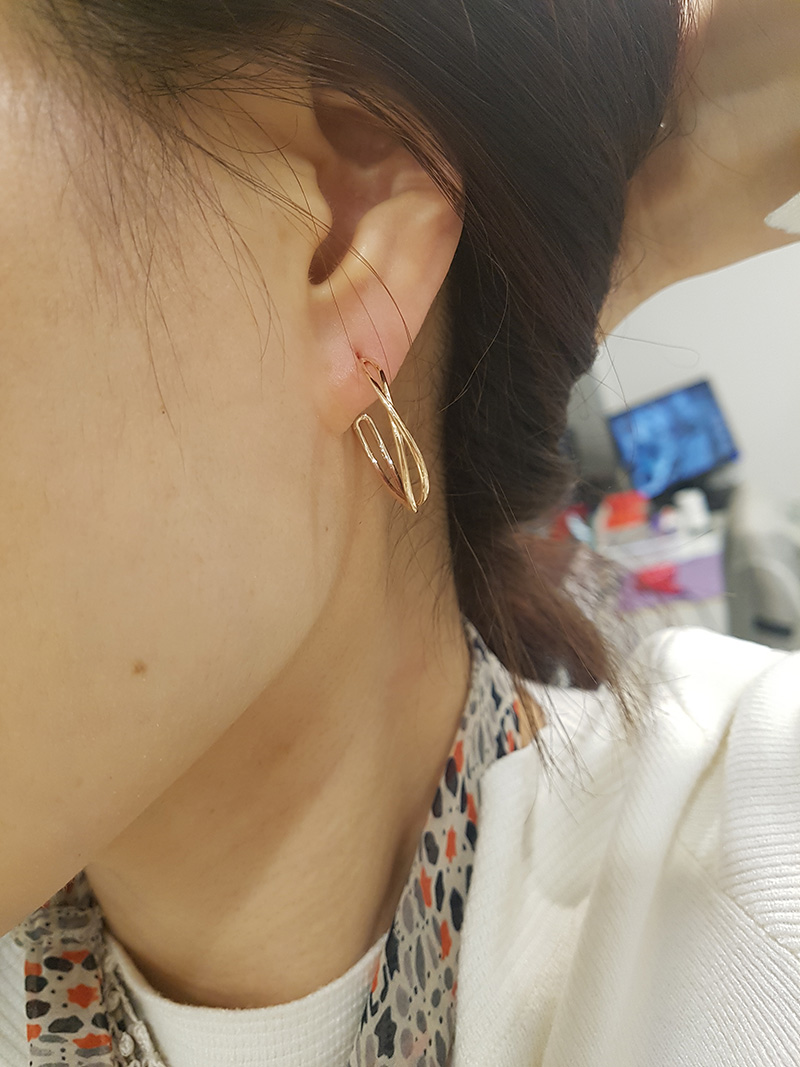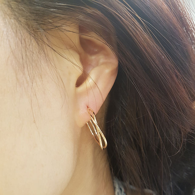 14k 파이프 두줄 꼬임 이어링 (현골드앤실버)