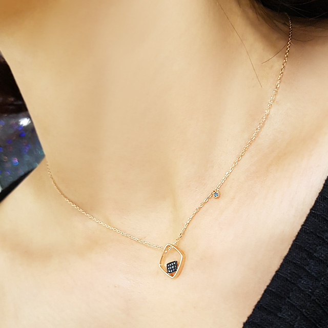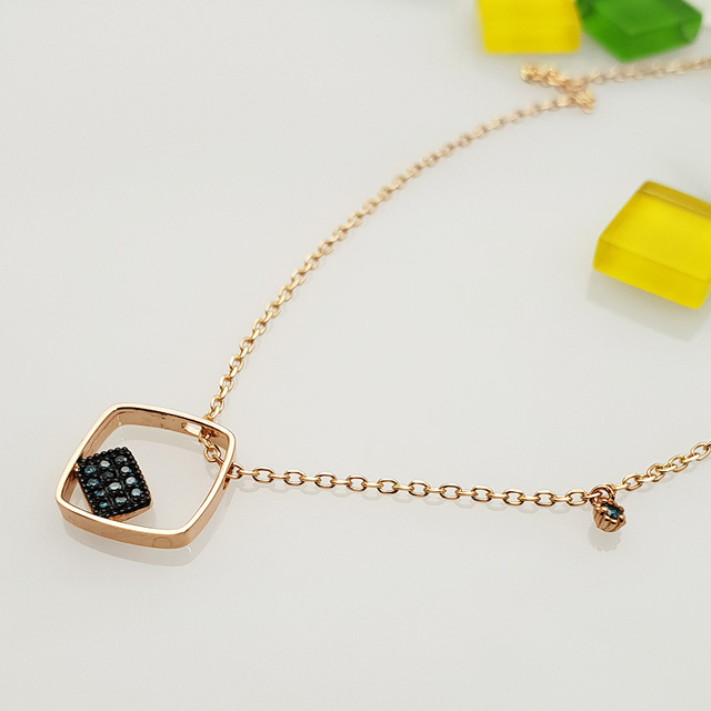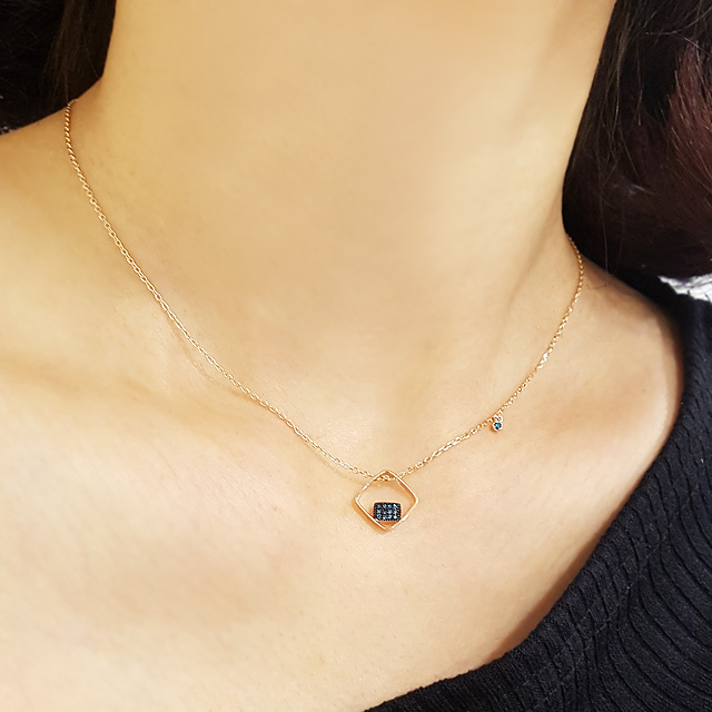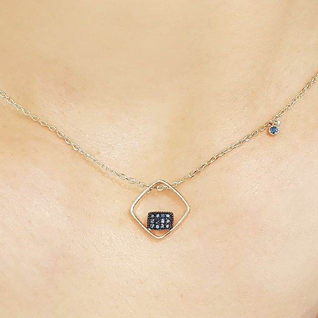 14k 더블스퀘어 청다이아 목걸이 입니다.