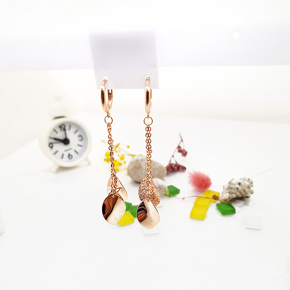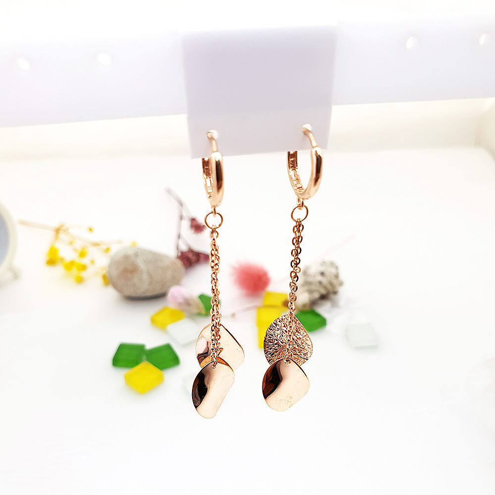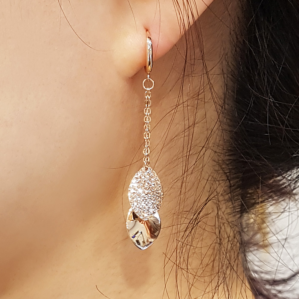 14k 체인 두줄 나뭇잎 이어링 입니다.