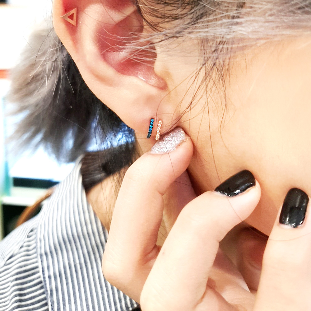 도형 삼각 모양의 피어싱으로