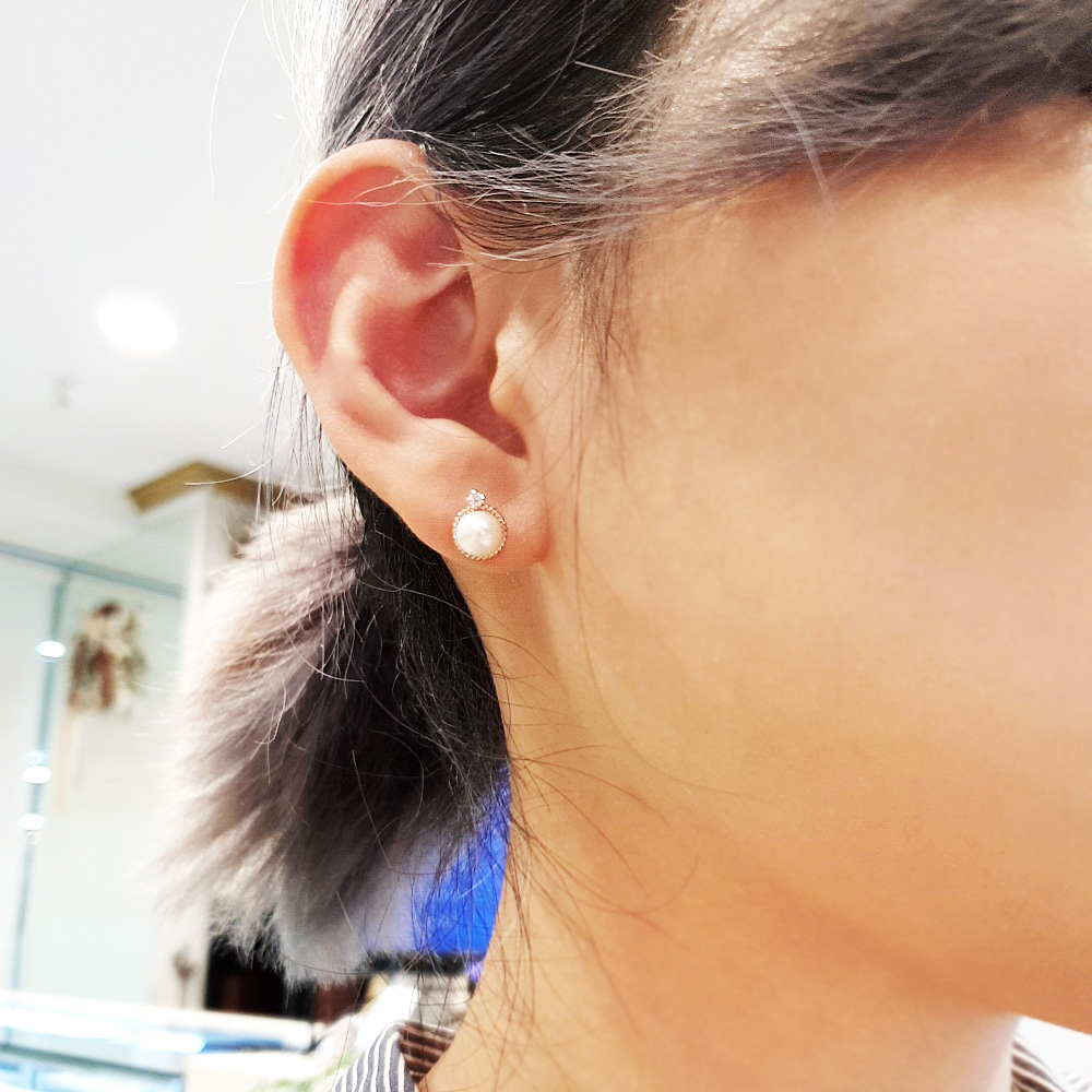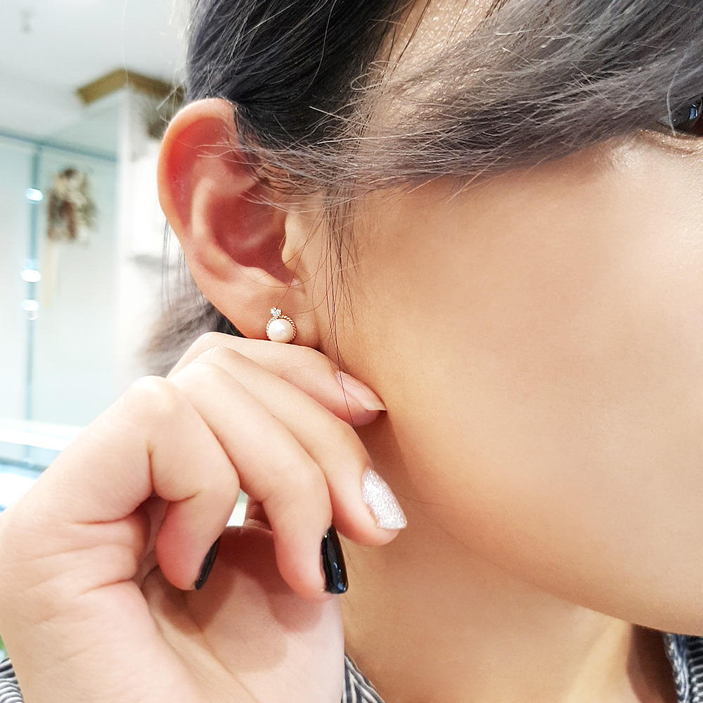 메인보석 : 6mm 담수진주 1ea / 큐빅지르코니아 1ea