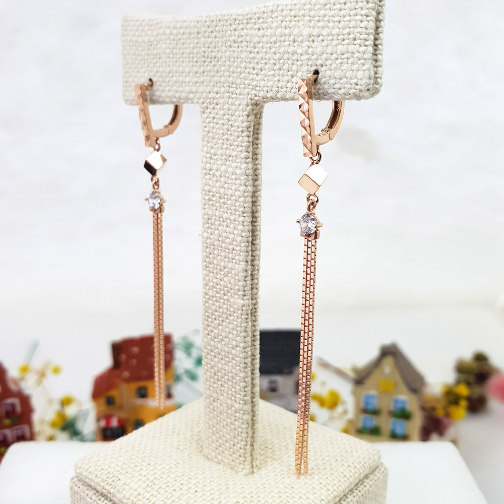 14k 스퀘어 볼 롱줄 이어링 입니다.