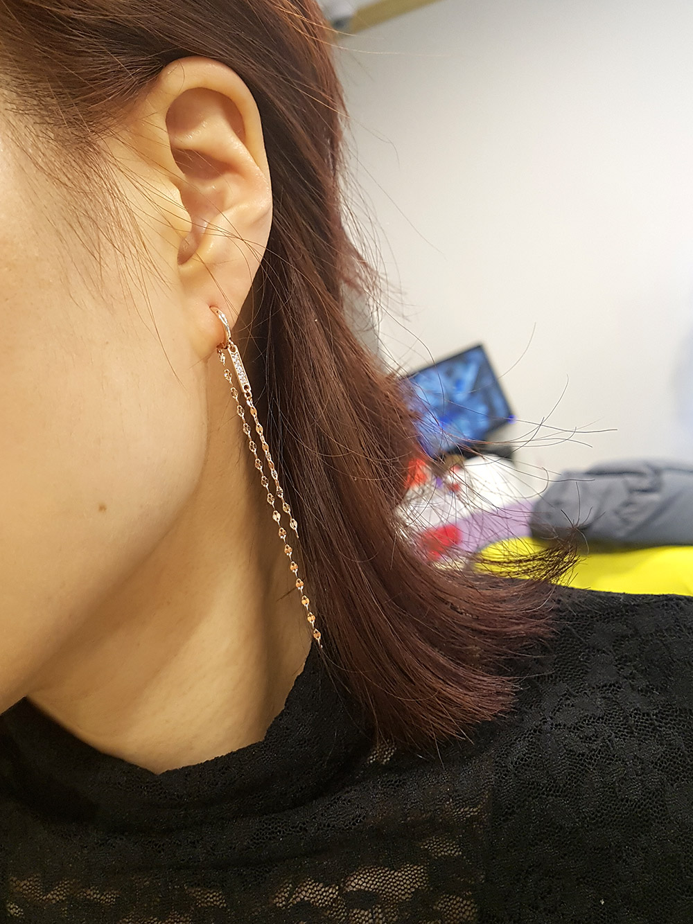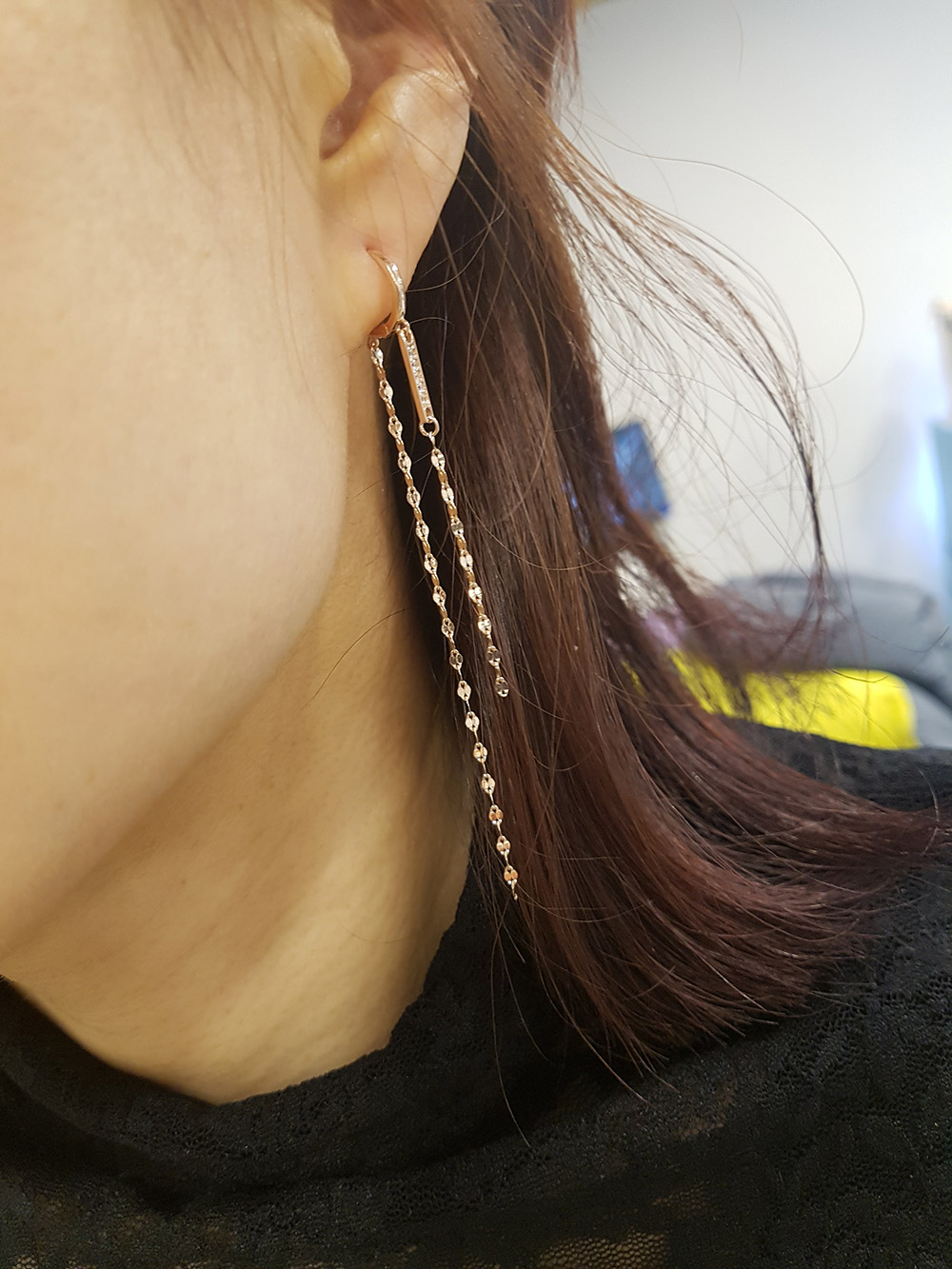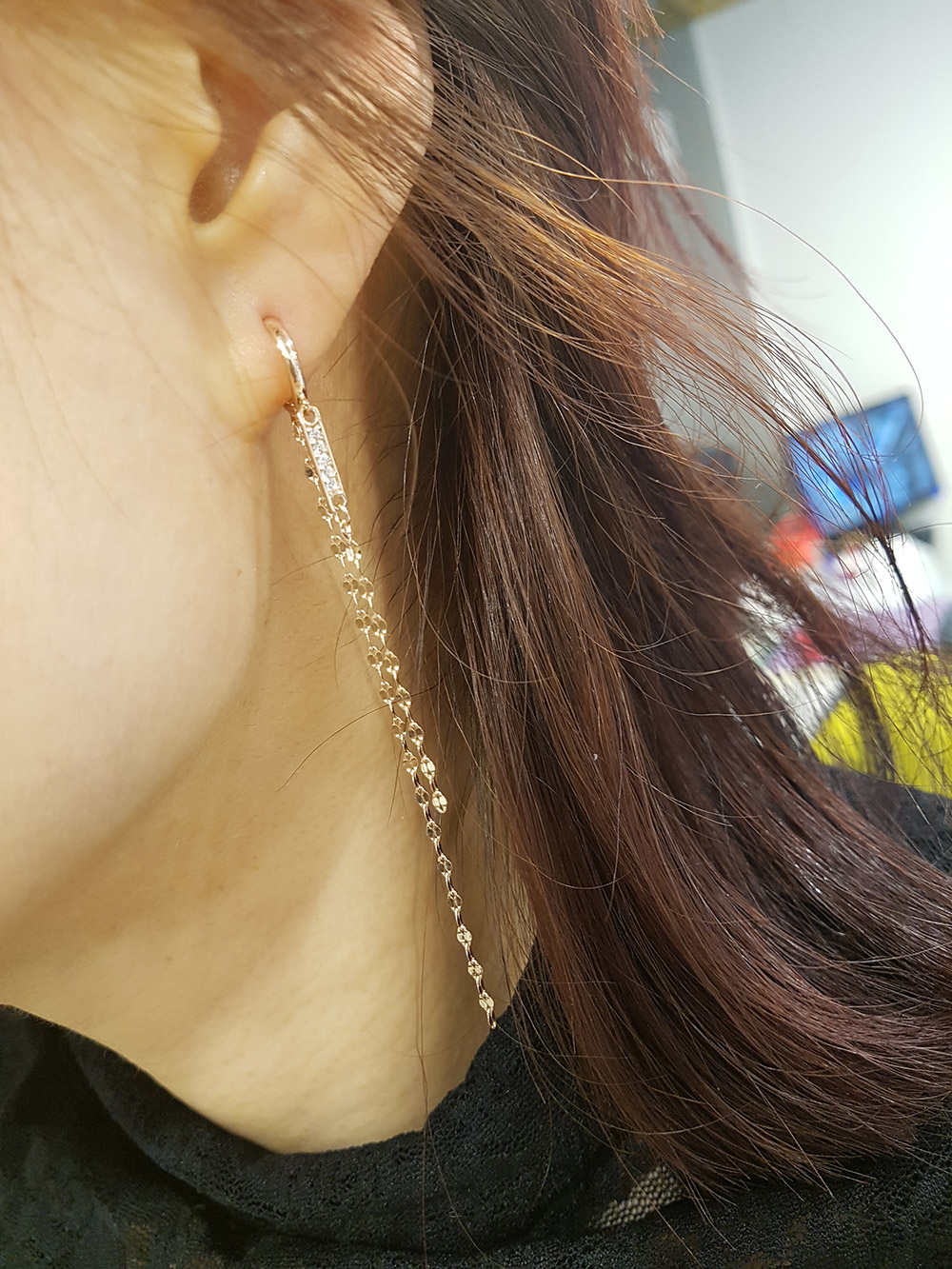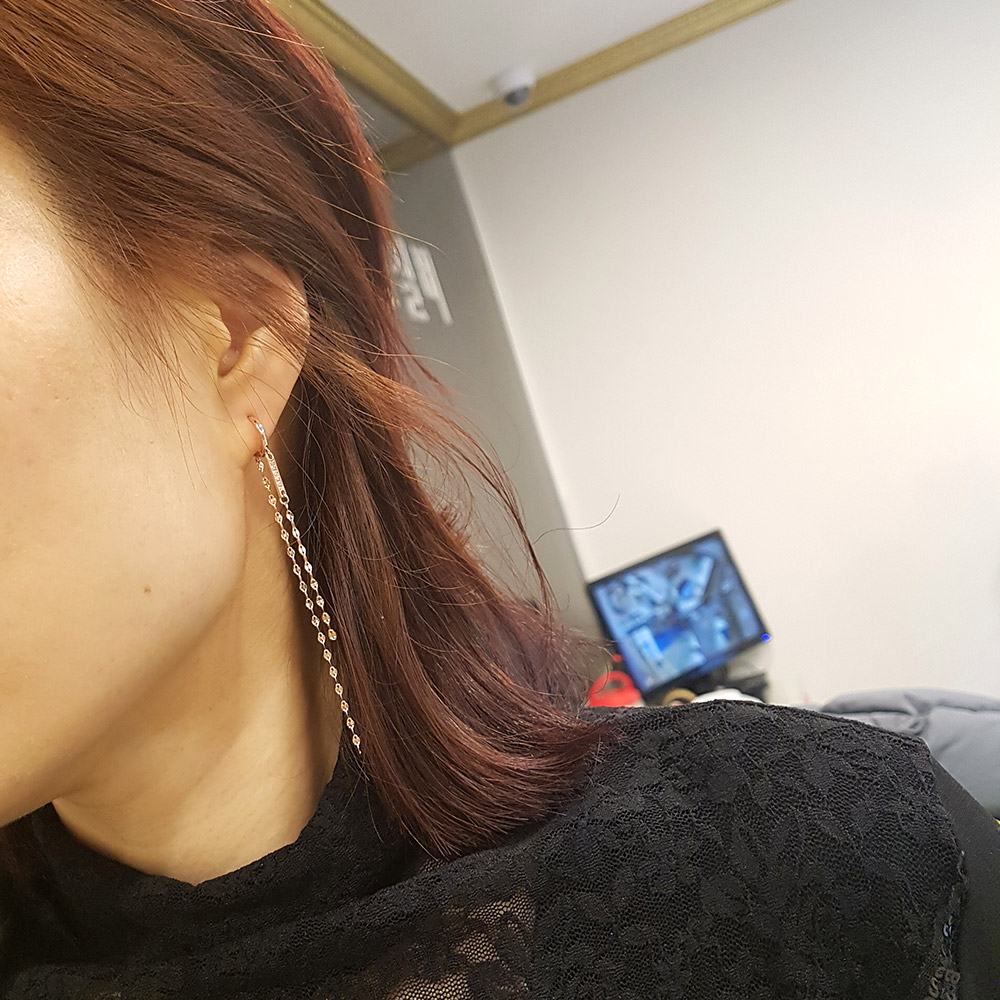 14k 두줄 롱줄 이어링 입니다.
