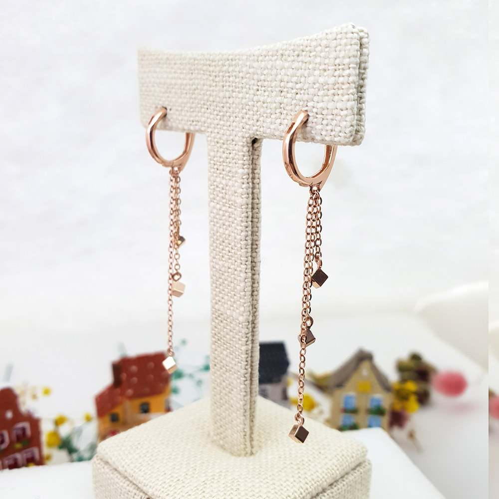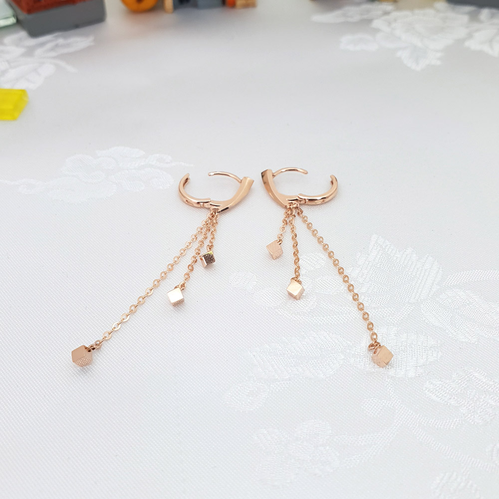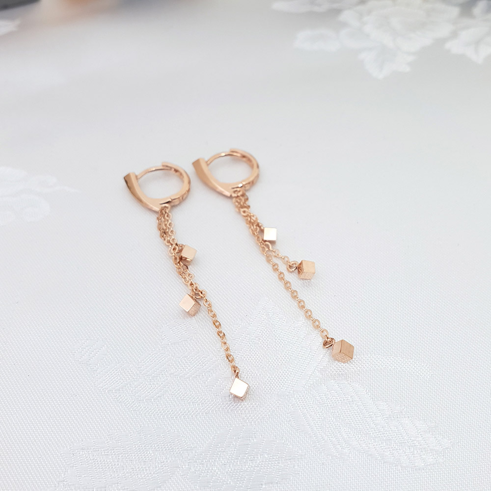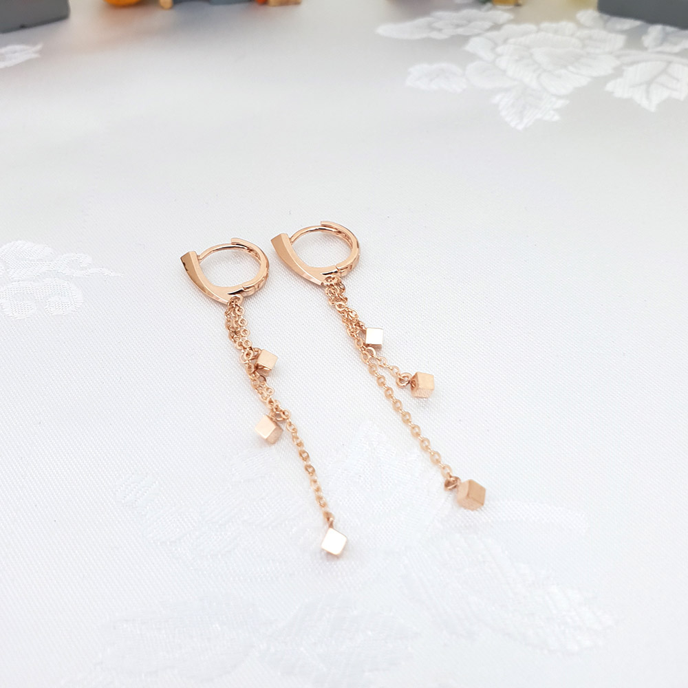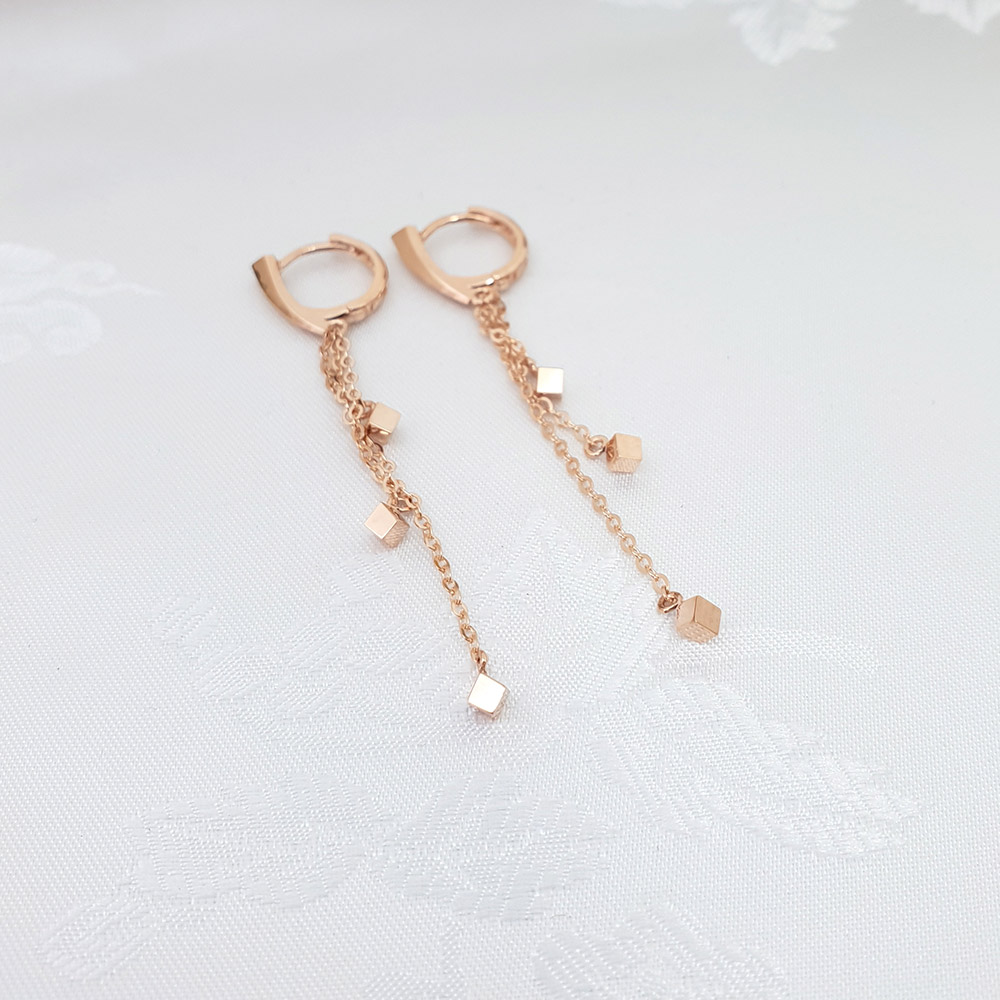 14k 스퀘어 세줄 롱 이어링 입니다.